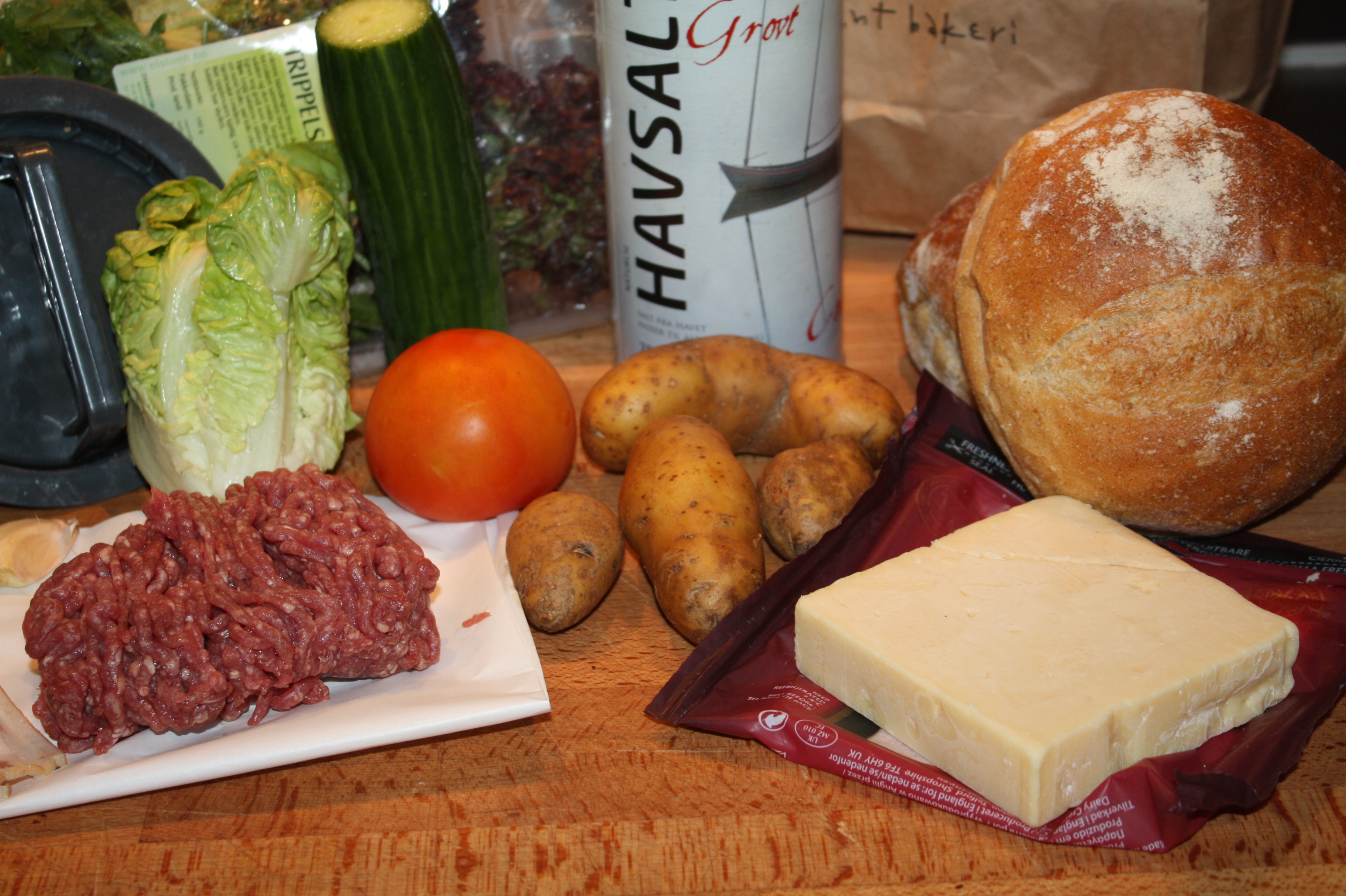 Da nærmer helgen seg her, og jeg tenkte å friste dere med en supergod hamburger! Dette er en av mine favorittmiddager, og smaker fantastisk. Nå som det endelig snart er helg, hva er vel da bedre enn å slå til med en deilig middag? Personlig synes jeg hambuerger er best på et deilig ferskt brød. Et av mine favrittbrød, er fransk landbrød, så det var dette jeg brukte i dag. Det deilige ferske brøde gjør det hele fantastisk! For en stund tilbake kjøpte jeg en hamburgerpresse på Åhléns. Denne er perfekt til å lage hamburgere med, og koster kun 15 kroner. Et veldig bra kjøp.