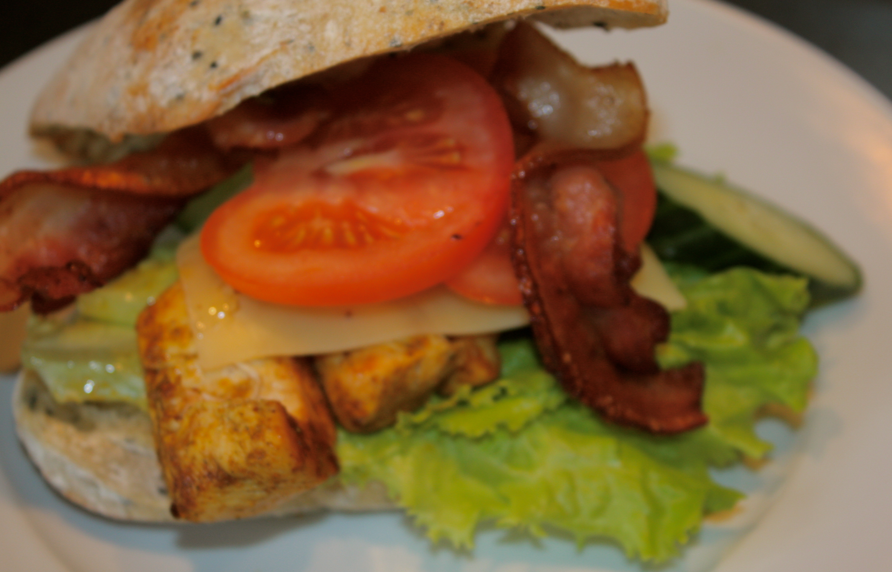 I dag skal jeg friste dere med en deilig kylling sandwich. God og veldig mettende. Perfekt som lunsj i finværet. Om du er ekstra sulten, er det godt med hjemmelaget potetbåter til.