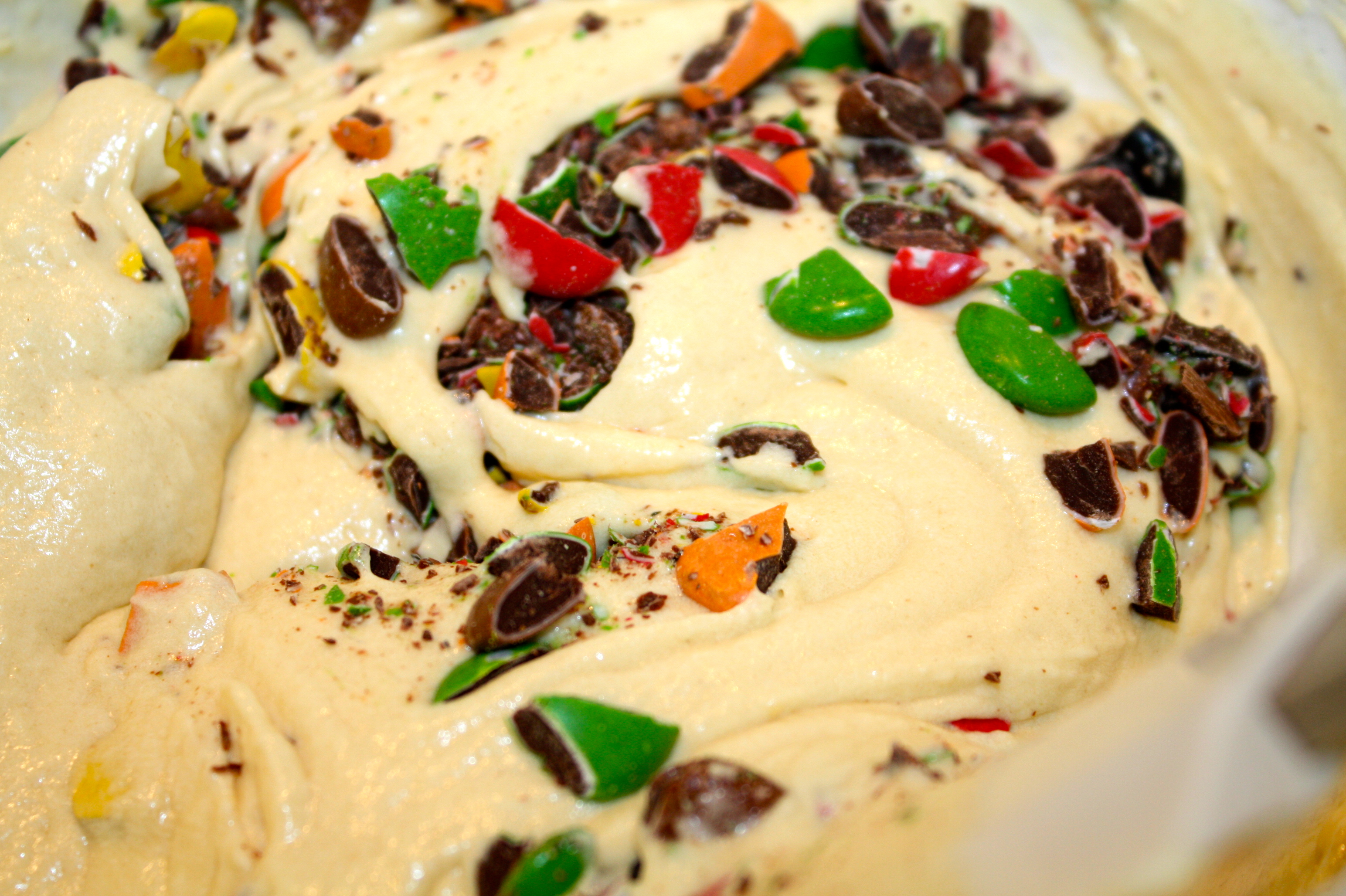 5. Tilsett hakket nonstop, rør forsiktig med slikkepott, slik at ikke røren blir farget.