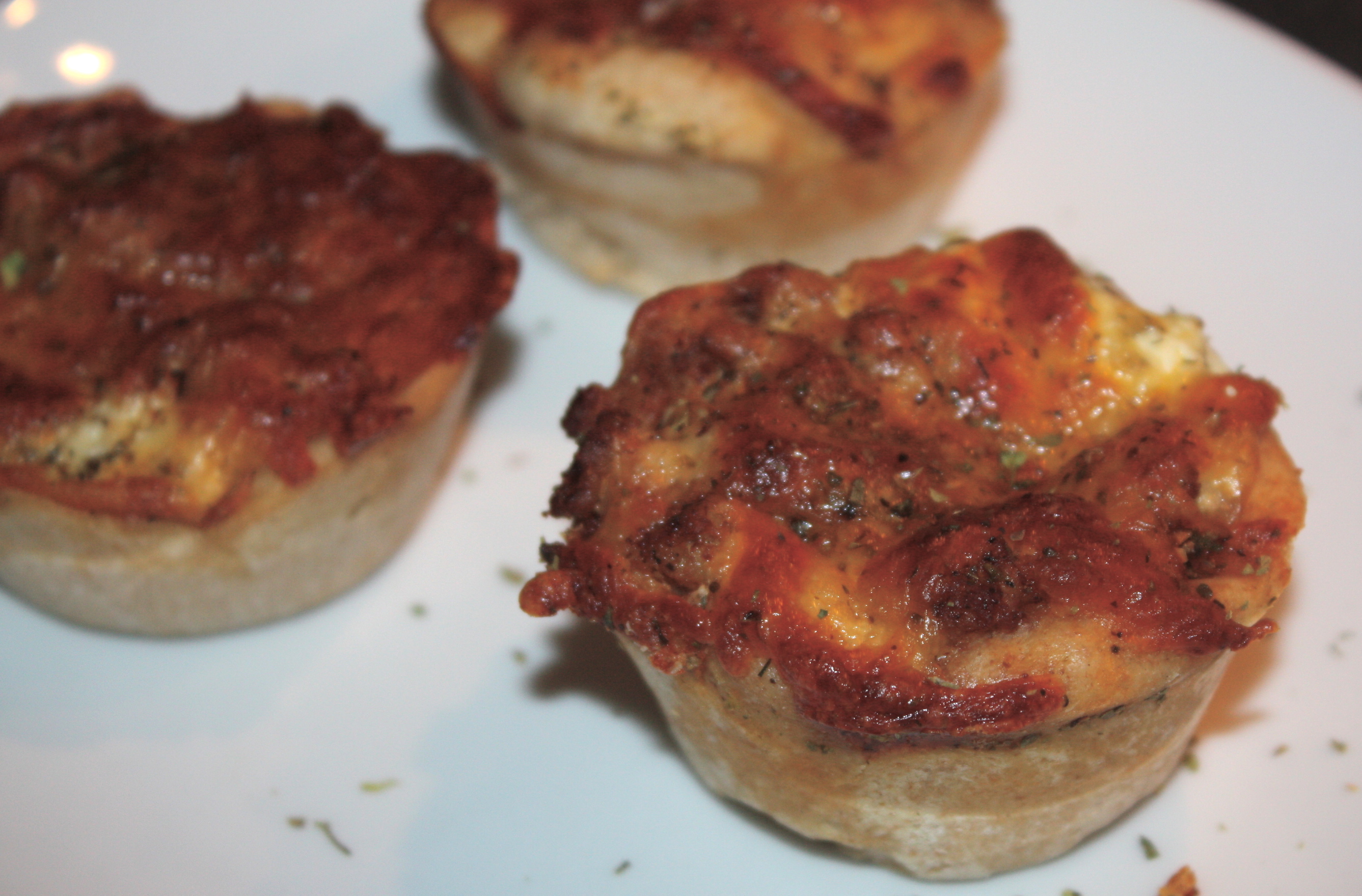 Nå er jeg tilbake solbrun fra ferie! Har vært herlig med strandliv i 2 uker, men deilig å komme hjem til kjøkkenet og hverdagen 🙂 I går laget jeg minipizza i cupcakebakeformen min fra Wilton. Supert å ha med som lunsj, eller som tilbehør til tapas. Jeg bakte disse med hvetemel og fullkornsmel slik at det skulle bli litt mer mat i dem.