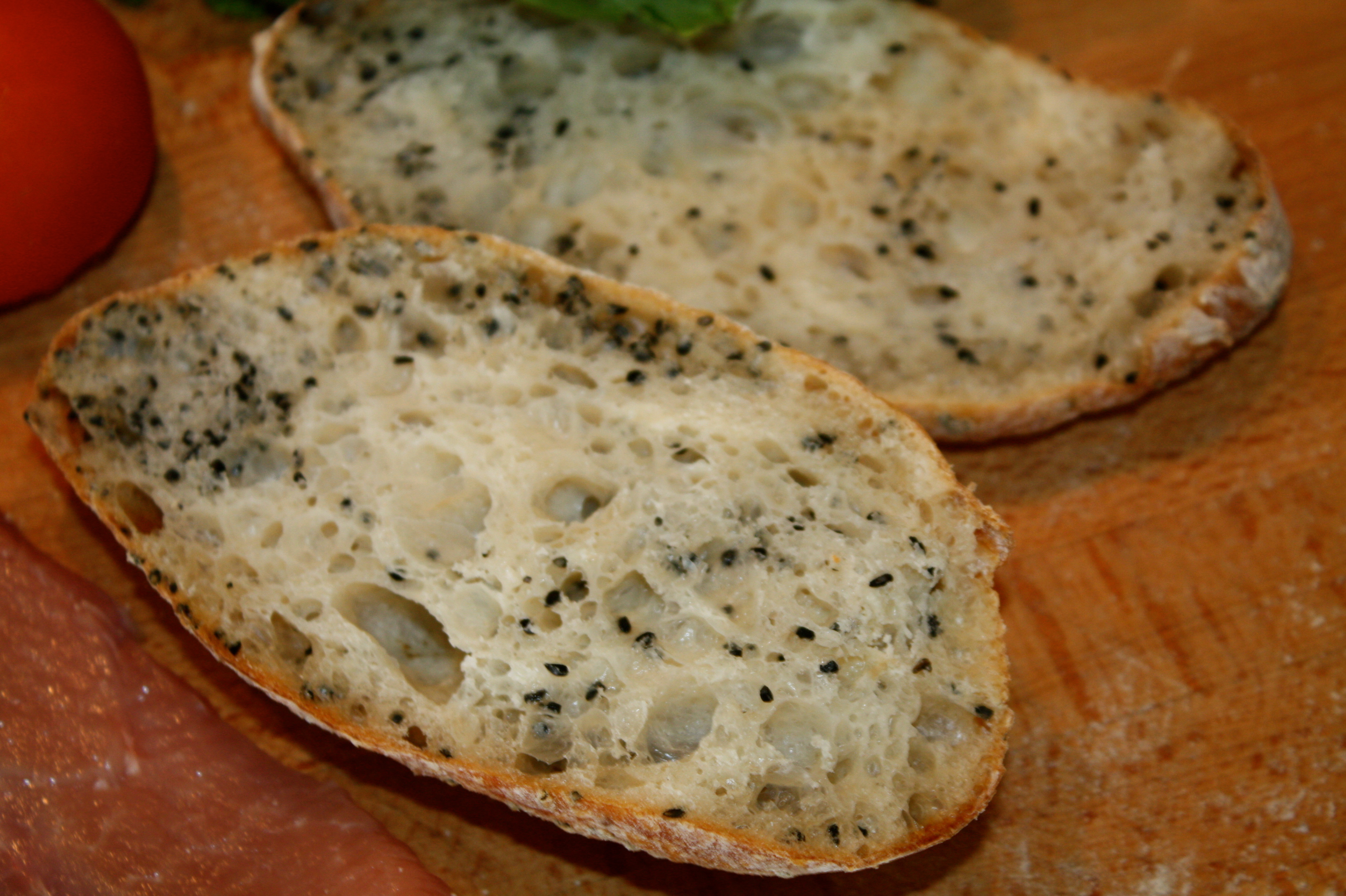 1. Skjær brødet i to, jeg liker å varme det i ovnen, mens jeg steker kjøttet sammen med krydder.