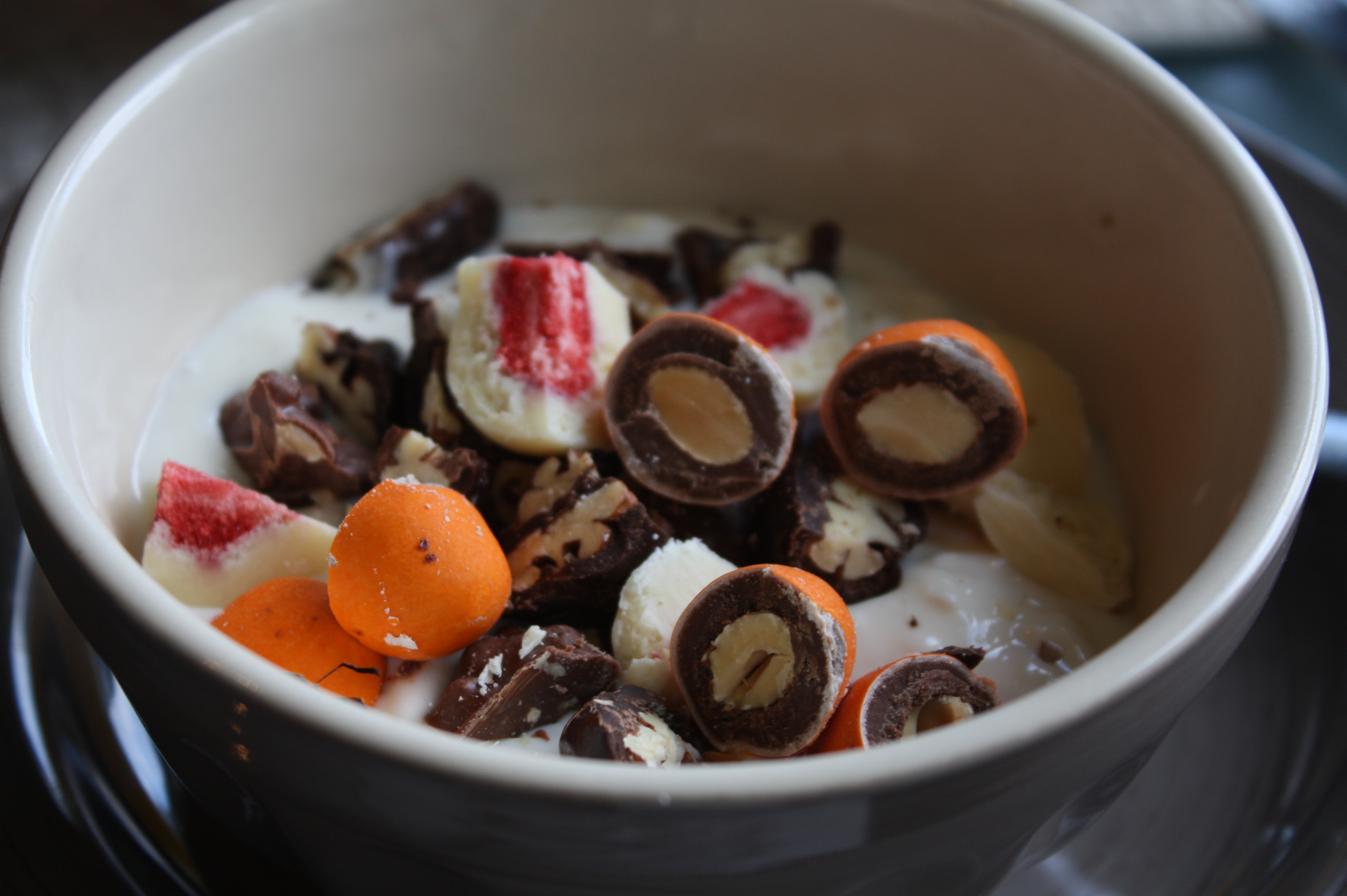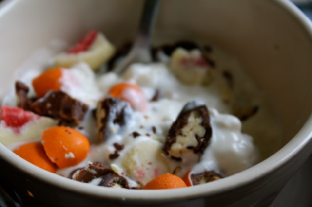 Beklager for veldig dårlig blogging. Jeg har flyttet, og har derfor ikke hatt internett før nå. Uansett nå er jeg tilbake for fullt 🙂 Tenkte å tipse dere om en av mine favoritt frokoster, nemligcottage cheese blandet med mager vanilje kesam. Jeg liker ikke å spise ren cottage cheese, derfor blandet jeg det med vanilje kesam, noe som ble supert godt. Toppet med noen deilige youghurtnøtter, har du en herlig energi bombe til frokost!