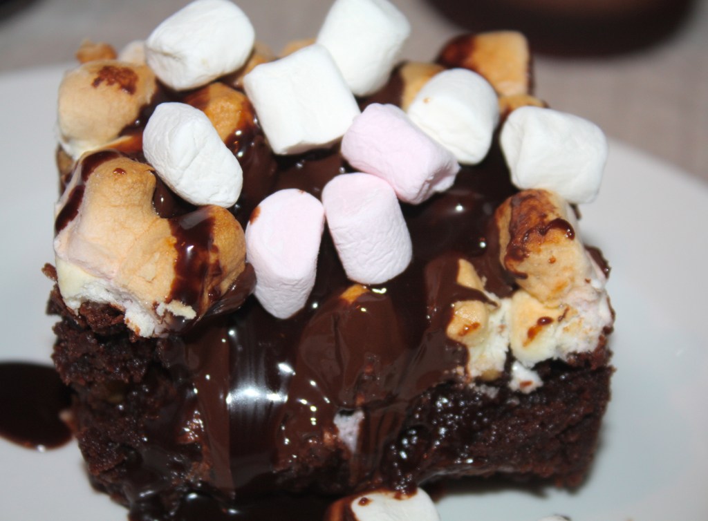 Noe av det beste jeg vet er brownies, ingenting smaker bedre enn kake full av deilig sjokolade. Denne kakeoppskriften er fra USA selvfølgelig, en kake jeg ofte spiste da jeg bodde i Boston. Brownien inneholder mini marshmallows, valnøtter og chocolatechips. Yummy! Jeg halverte denne oppskrifen siden jeg laget den i 2 mini brødformer. Om du vil dobleroppskriften baker du den i en 18×26 cm panne. Oppskriften kan også bakes i små mini former som f.eks cupcakesformer 🙂