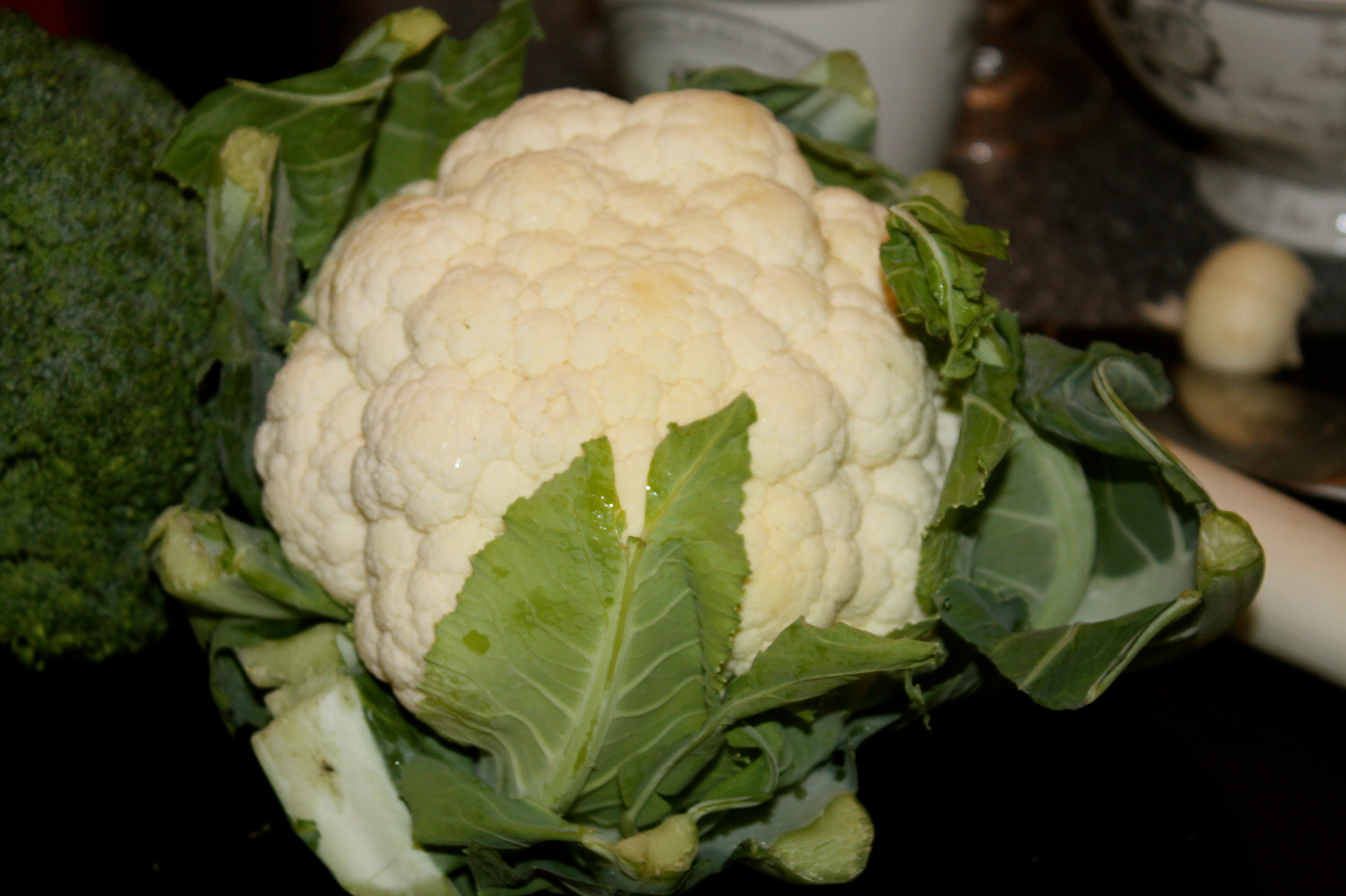1. Kutt og rens blomkålhode og purreløken i biter.