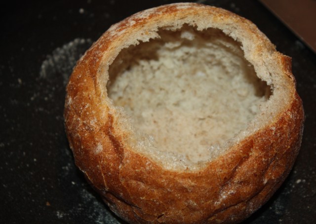 8. Skjær av toppen av rundstykket, og ta ut alt brød inni.