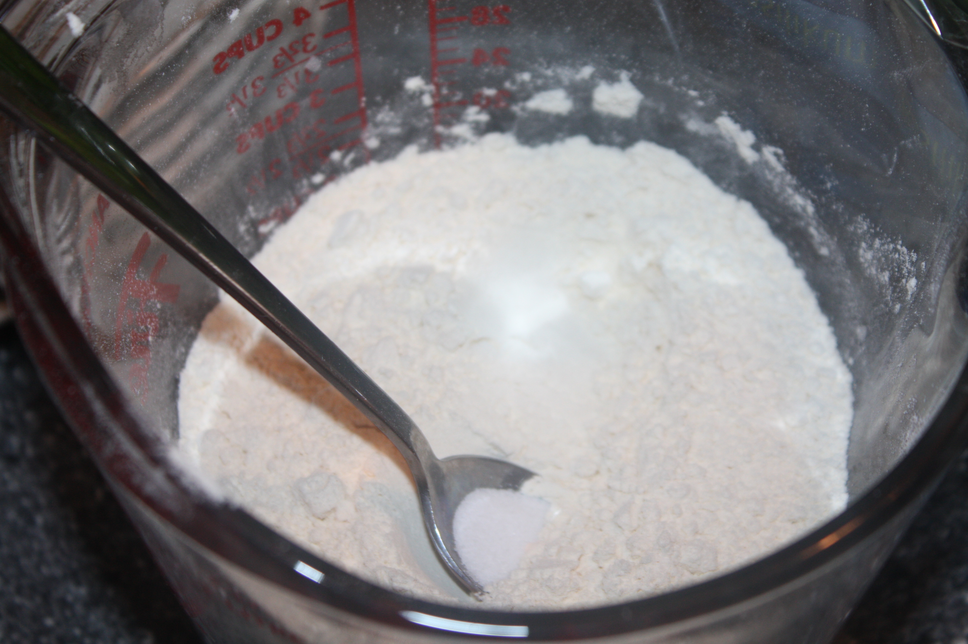 2. Bland mel og salt godt sammen i en bolle, og bland inn sammen med gjærblandigen.
