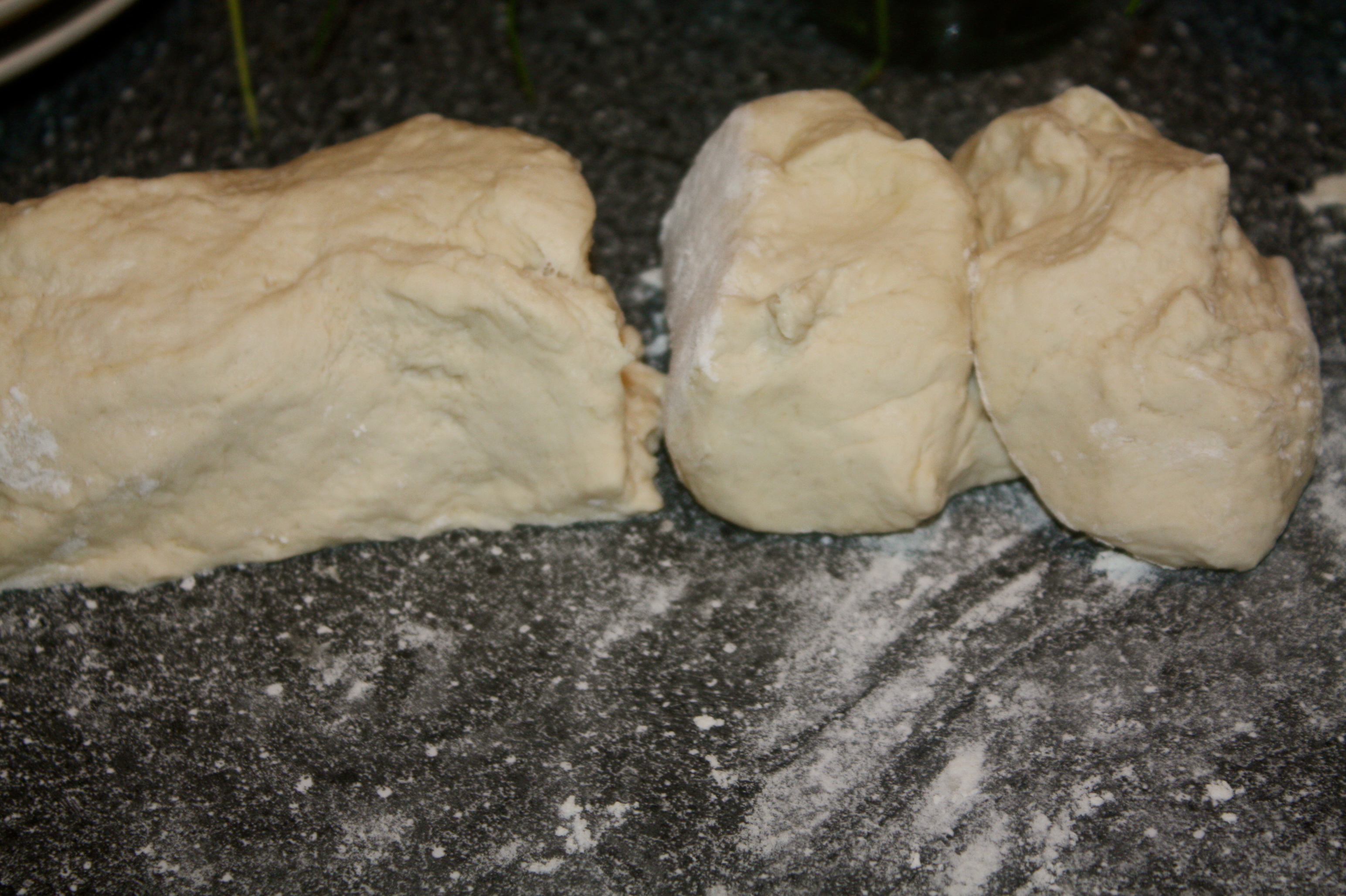 5. Rull deigen sammen som en pølse, og del den i 6 emner.