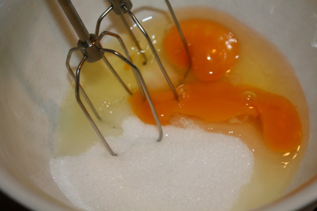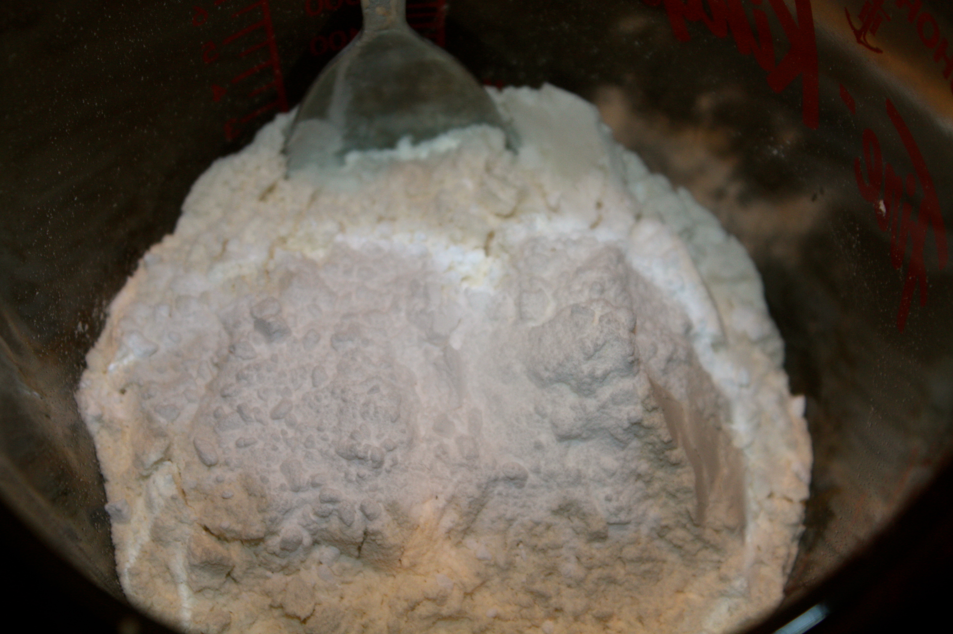 2. Bland mel, bakepulver og vaniljesukker i en egen bolle.