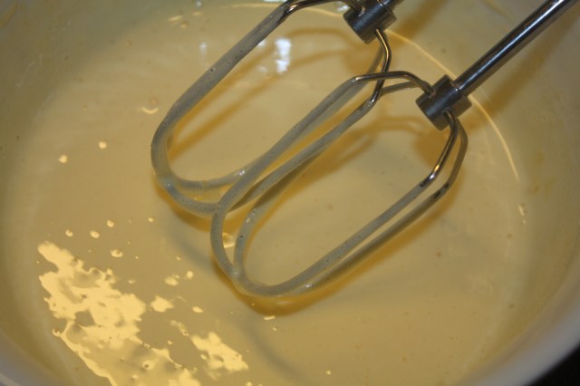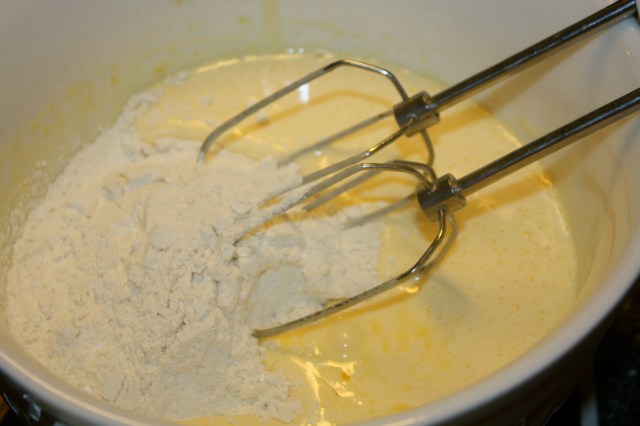 3. Tilsett blandingen sammen med smeltet smør, å miks videre.