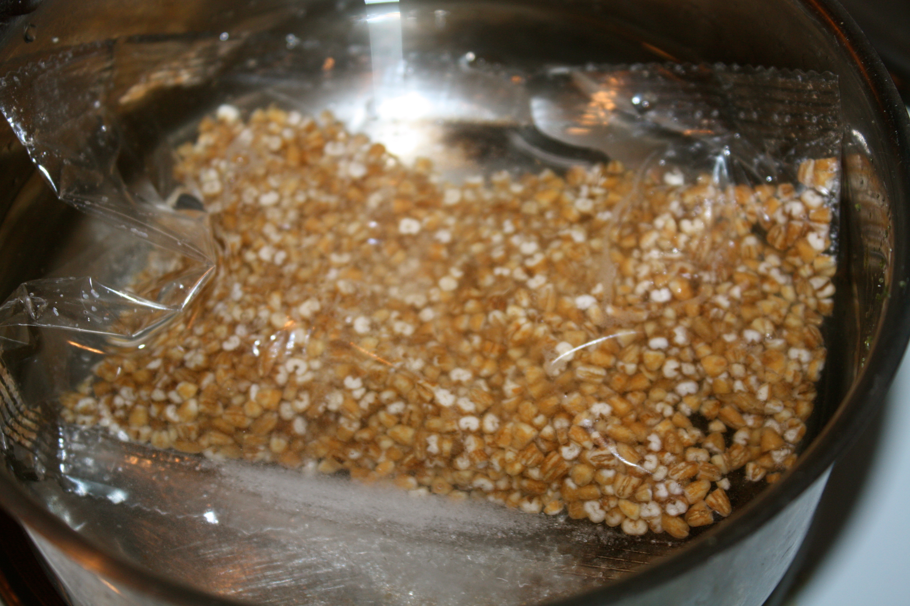 1. Kok byggrisen etter anvisning på pakken. Tilsett salt i vannet.