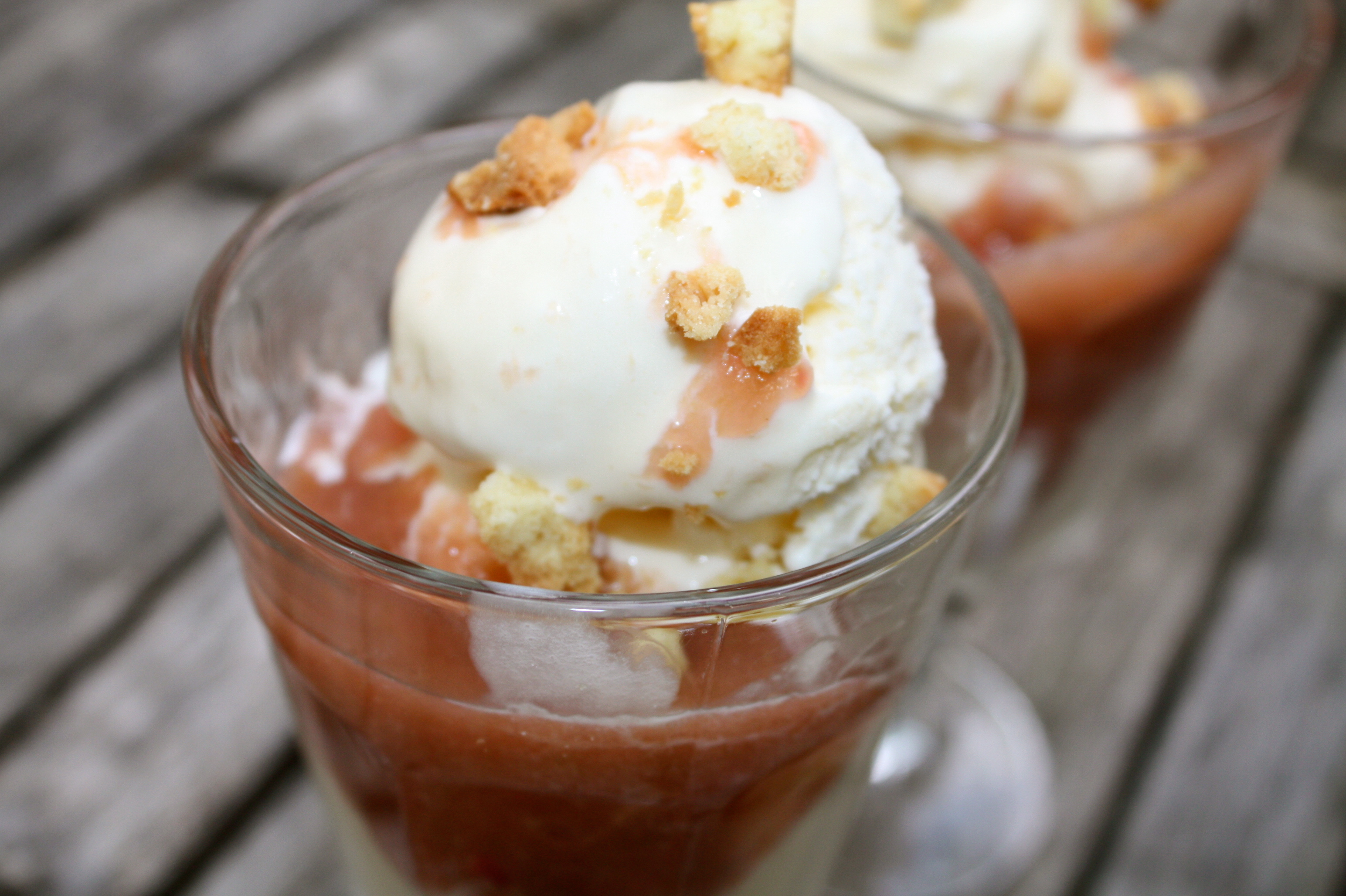 Forleden plukket jeg rabarbra av noen venner av meg. God og syrlig rabarbra servert med vaniljeiskrem er en perfekt sommer dessert. Ut å plukk dere. Dette er også en billig dessert, og det liker vi 🙂