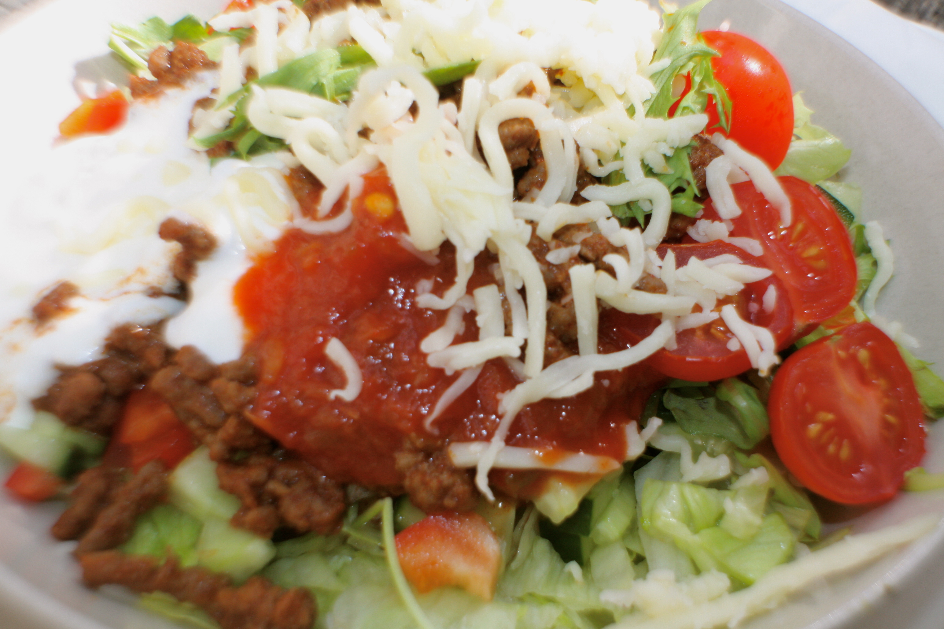 Tacokjøtt er jo bare super yum, sammen med salat er det en rask og sunn middag. Bruk dine favoritt grønnsaker og miks en god salat. Topp med deilig tacokjøtt.