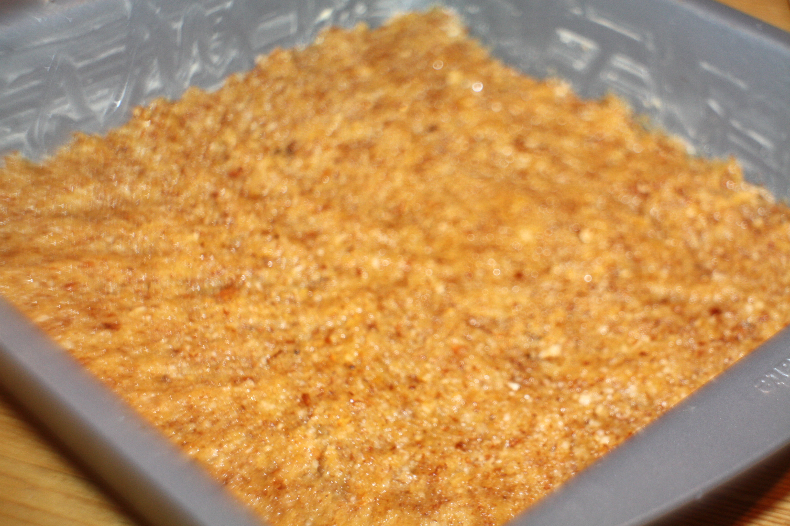 Trykk deigen ned i formen, jeg brukte fingertuppene. Stek på 150 grader i 30 min.