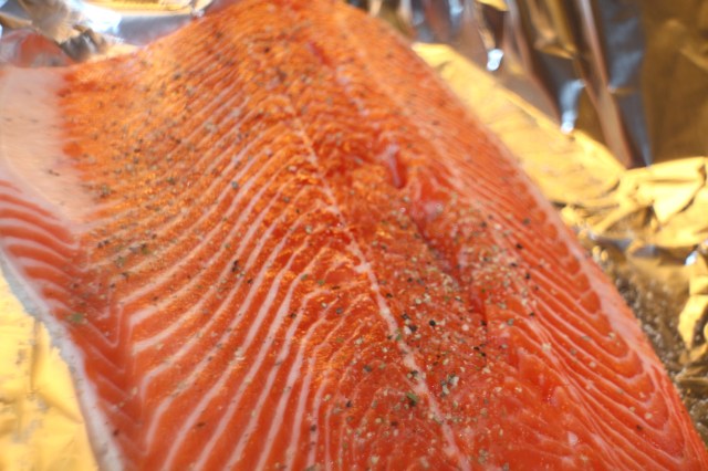 Server sammen med poteter, en frisk salat eller spinat. Du kan også grille laksen i folie på grillen. Sunt og godt.