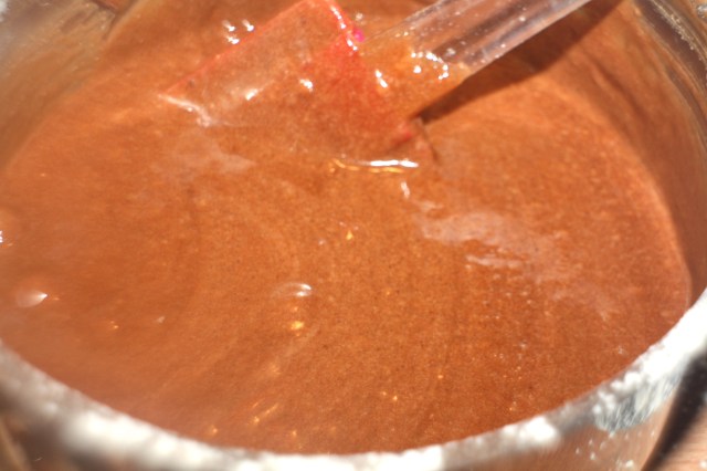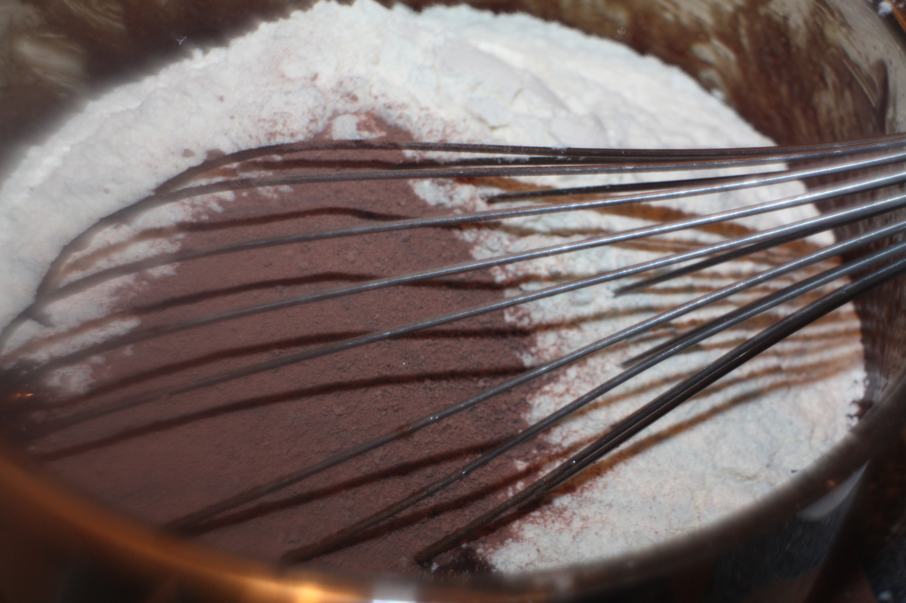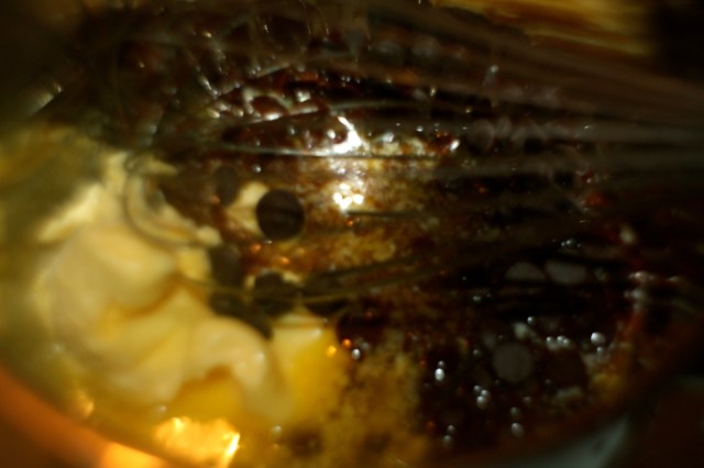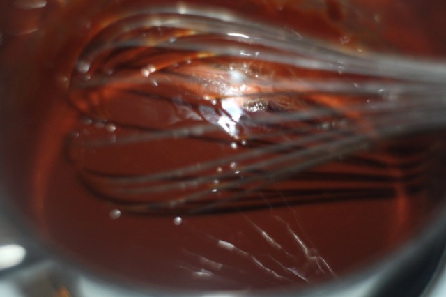 1. Smelt smør og sjokoladeknapper sammen i en kjele.