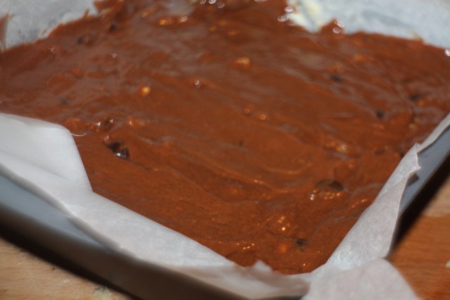 6. Smør en 18×26 cm panne med smør, legg bakepapir over(da klistrer bakepapiret seg til bunnen). Du kan også bruke en liten springform, eller små porsjonsformer. Stek på 200 grader i ca. 20 min.