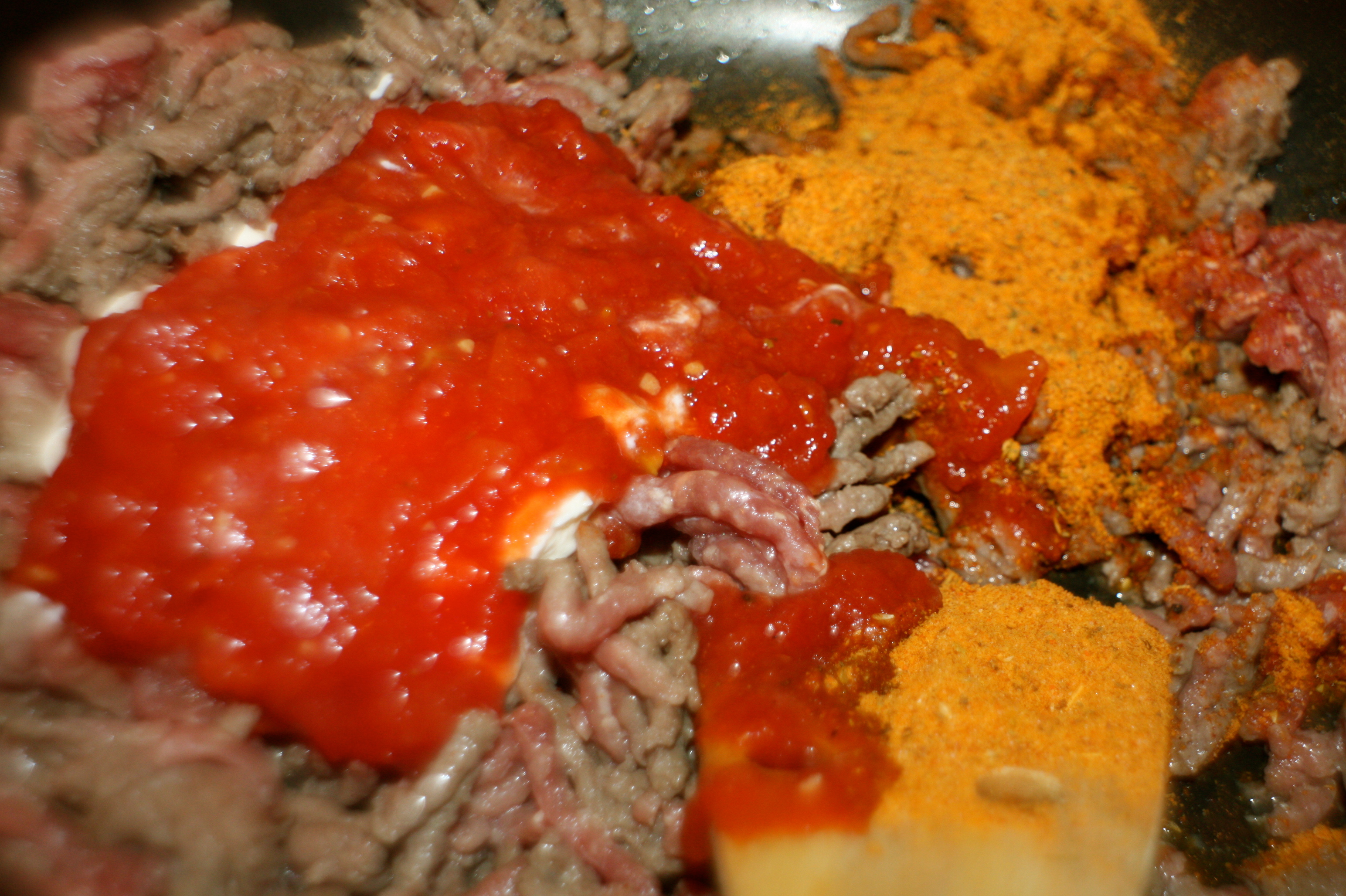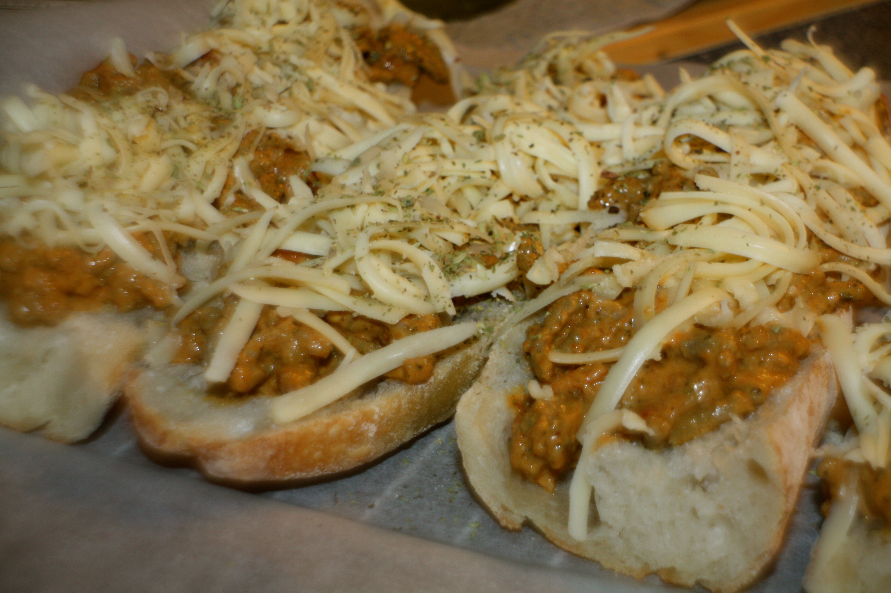 3. Ha på kjøttfyll og ha over revet ost.