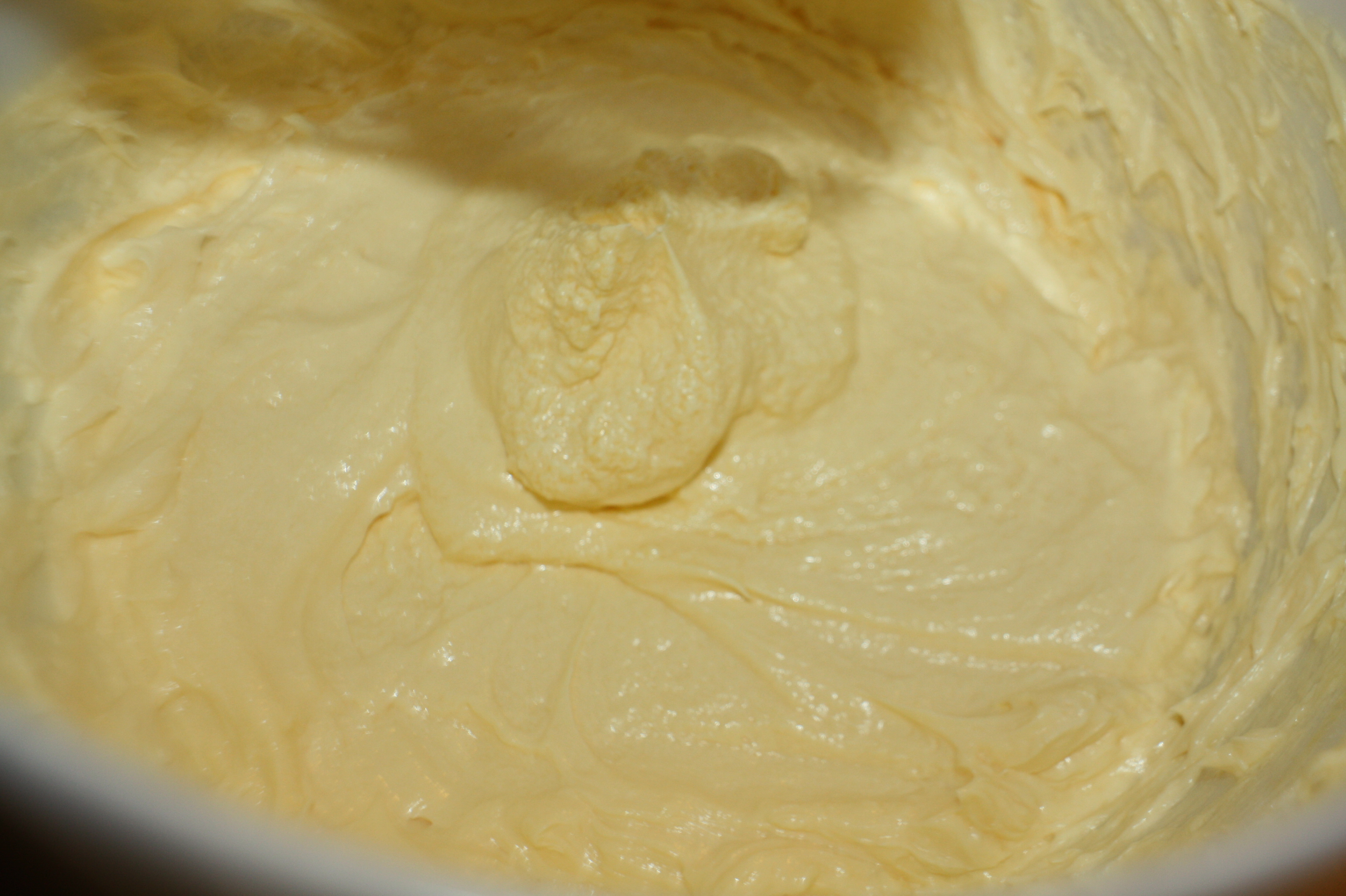 1. Miks smør, melis, sjokolade og kremost sammen med en skvett fløte.