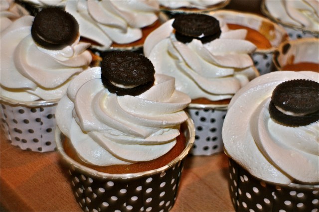 I helgen bakte jeg oreo cupcakes til mine fine kusine Oline sin konfirmasjon.Veldig fin feiring med familien! Oreo cupcakes er en av mine favorittcupcakes, oreo med chocolatechips toppet med deilig creme cheese frosting. mmm, må prøves ut 🙂 Jeg kjøpte disse søte formene med prikker på cacas. Elsker å bake med slike pappformer, synes cupcaken blir mye finere! Det er også lurt å bruke romtemperet smør og egg, slik at du oppnår best bakeresultat. Jeg bruker å legge ut egg og smør kvelden før.