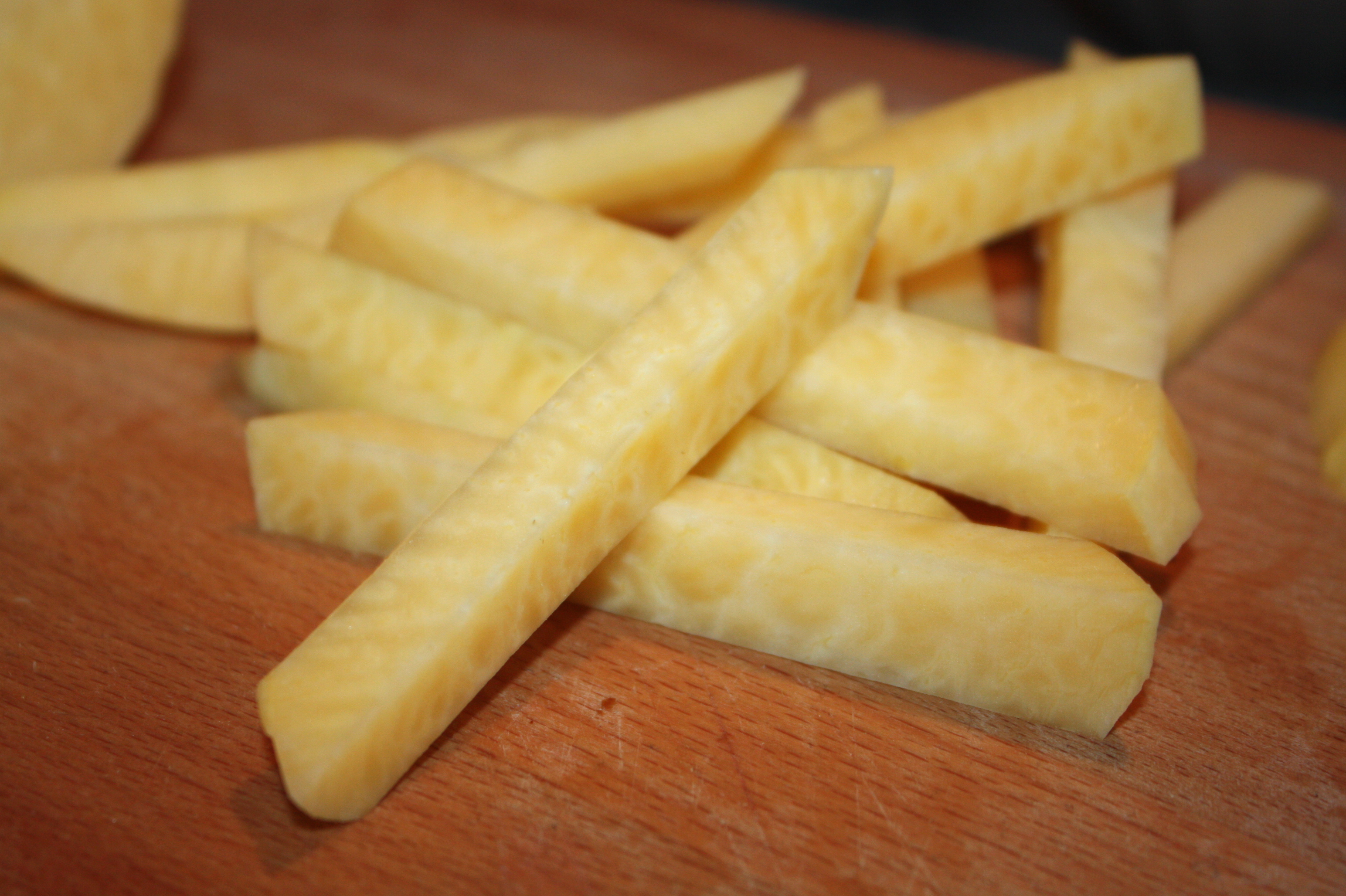 Stek i oven på 225 grader i ca. 30 min. Stek først i 15 min, ta brettet ut av ovnen og snu frisene, stek videre i 15 min.