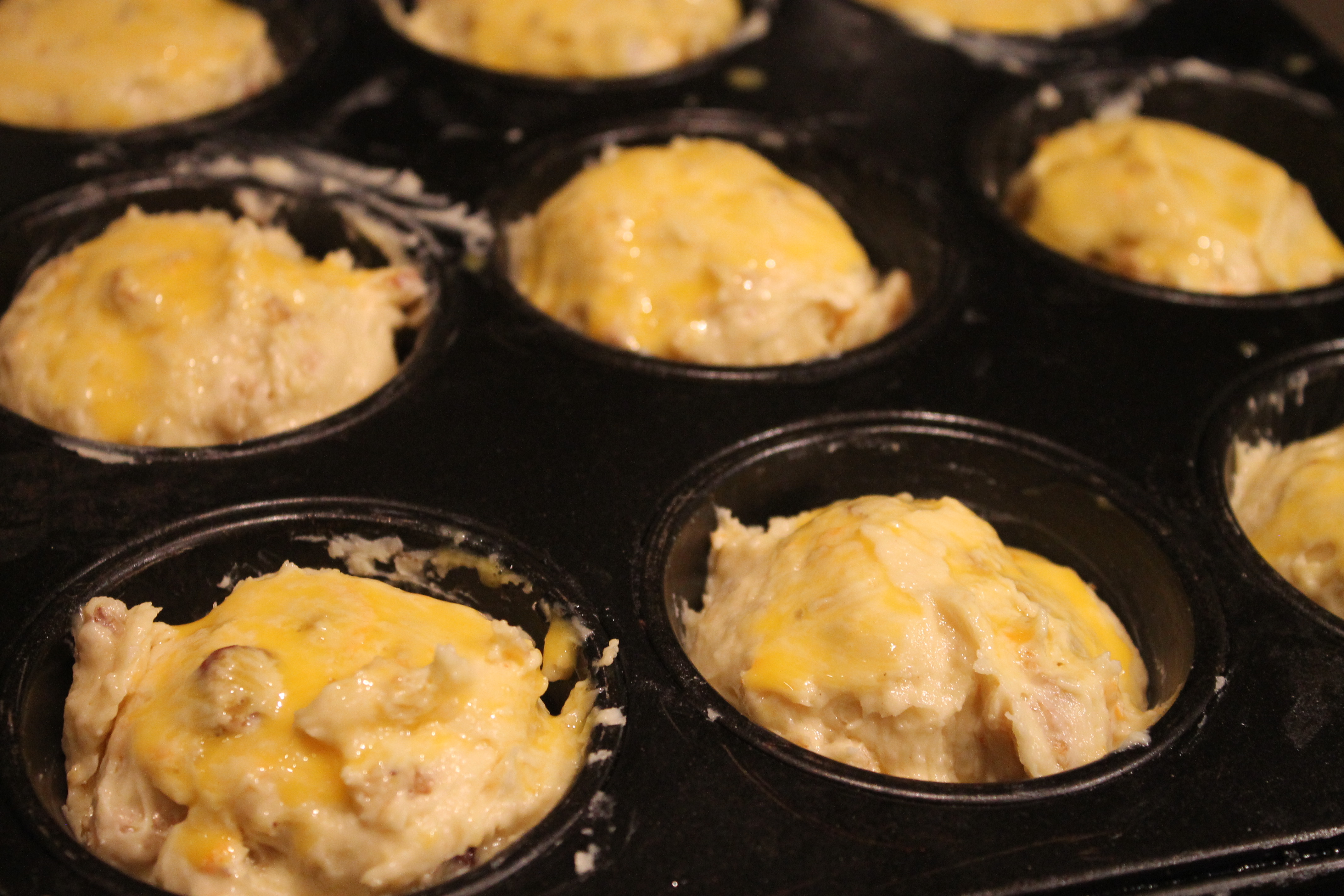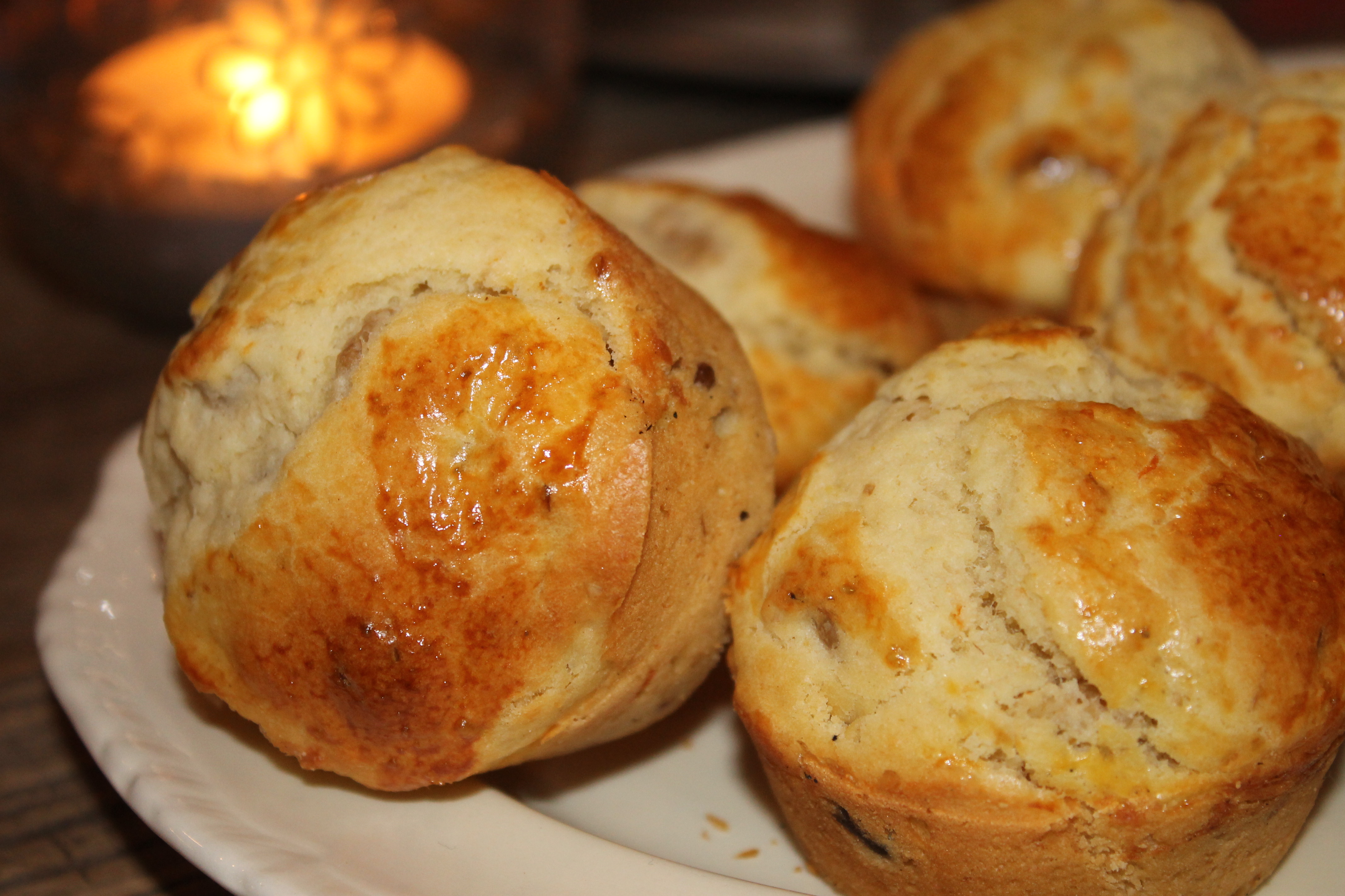 Fordel røren i cupcakeformer. Jeg brukte ca. 1 cookiescoop. Pensel med egg. Stek i ovenen på 200 grader – 15-20 min.