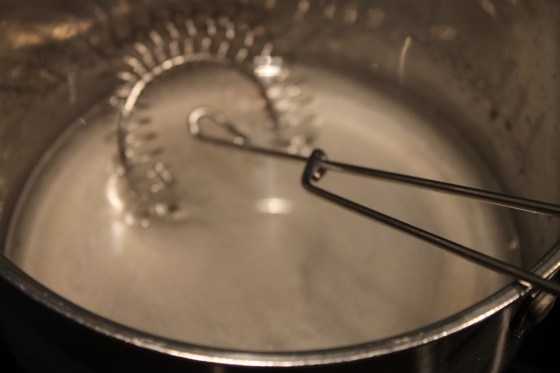 2. Kok opp vann og sukker på svak varme, til sukkeret har smeltet.