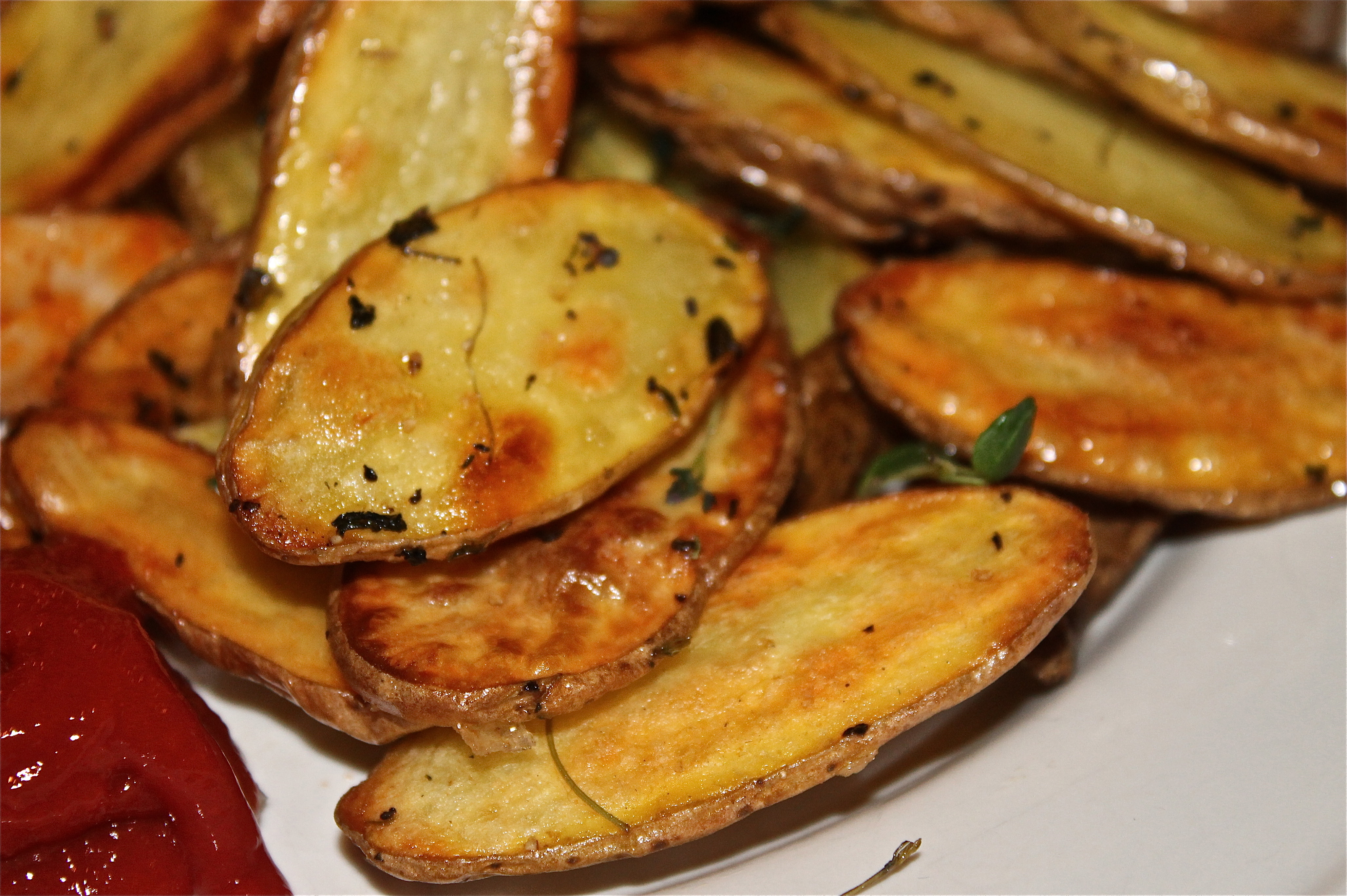 Selv om jeg skal jobbe hele helgen, får jeg forsatt weekend følelse 🙂 I helgen er jo det også lov å kose seg litt ekstra. Jeg elsker chips, sammen med ketchup er jeg i himmelen. mmm! Kjøpte idag noen amadine poteter som jeg skjærte i tynne skiver. Stekt dem i ovnen sammen med god olivenolje og maldon salt. Blir nesten som chips, nesten bedre og ikke minst litt sunnere. Sammen med litt frisk timian blir det en smakfull snack foran tven 🙂 Eller som tilbehør til en bedre middag!