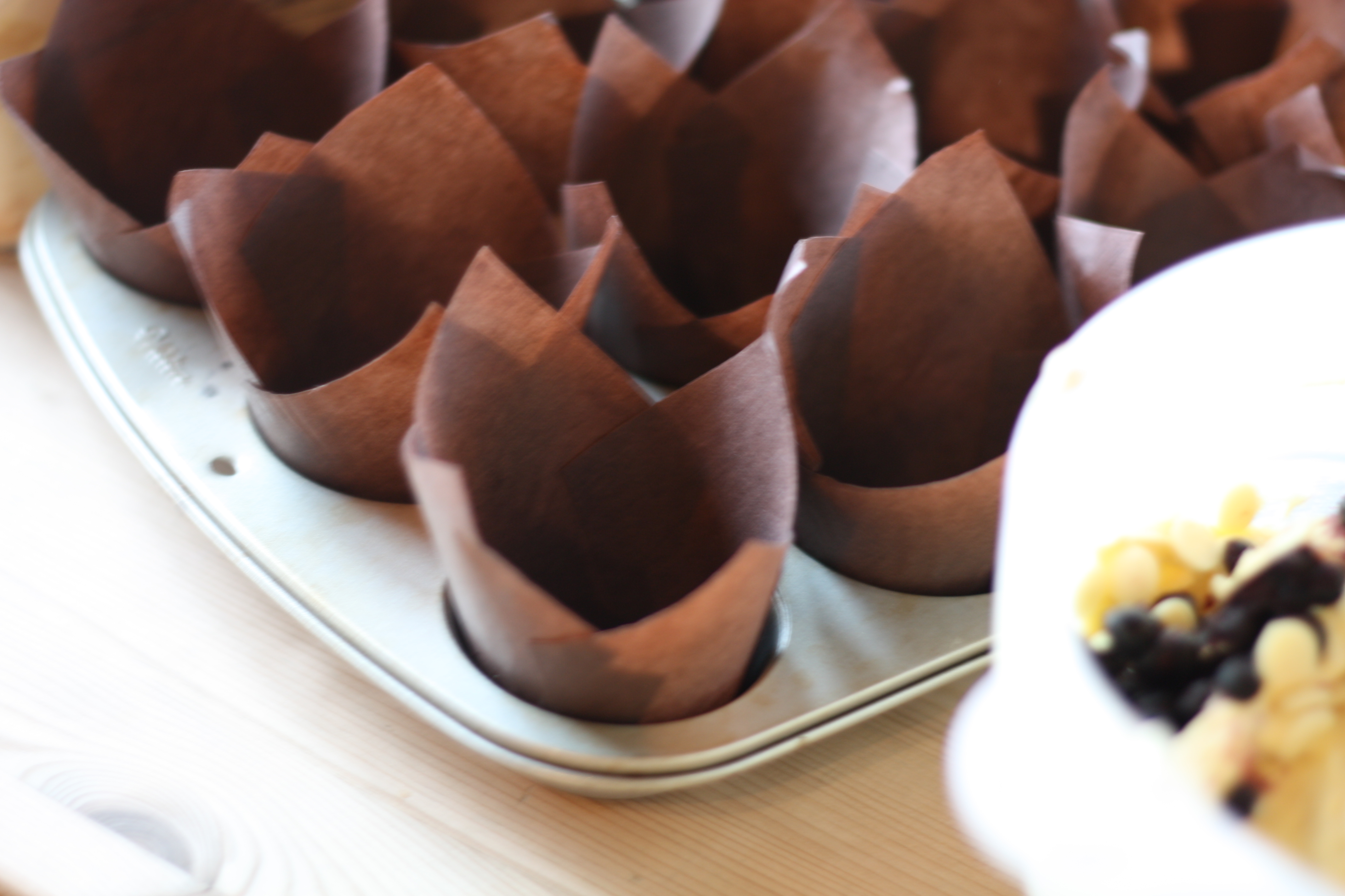 Fyll formene med røre ca.1.5 scoop med røre. Stek i ovnen i ca. 15 min.