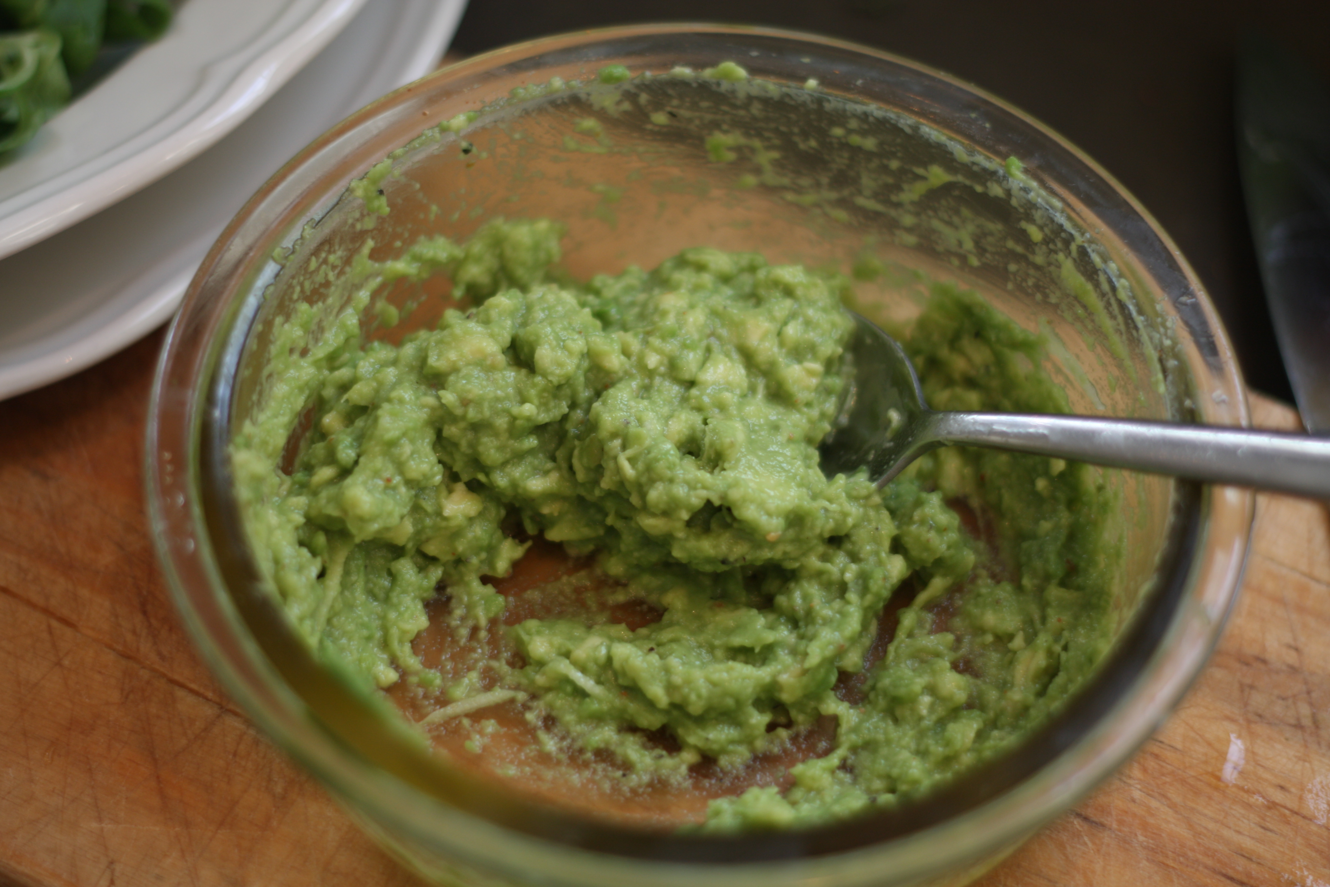 3. Mos avokoadoen med en gaffel, smak til med hvitløk, salt og pepper. Raskt og smakfult 🙂