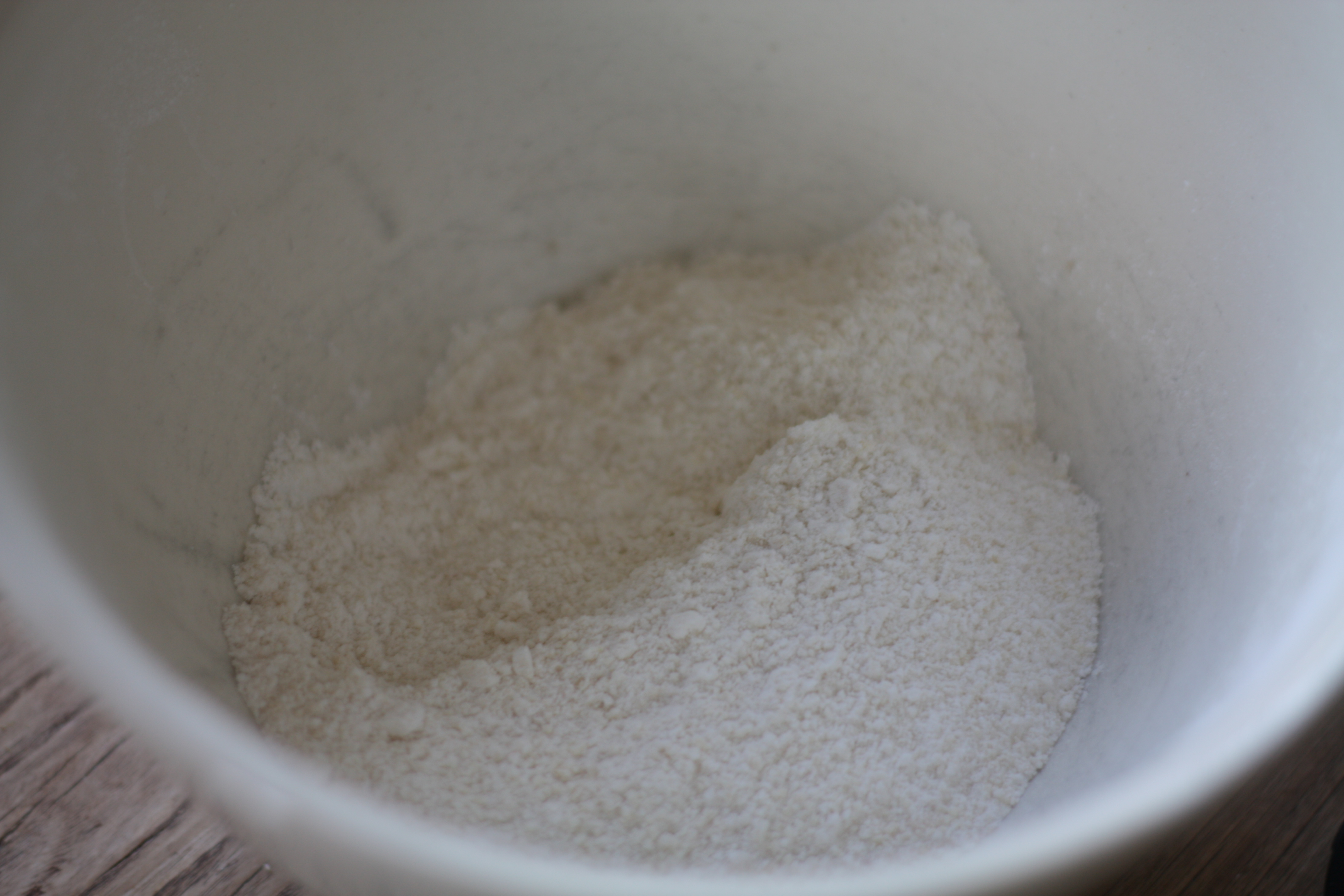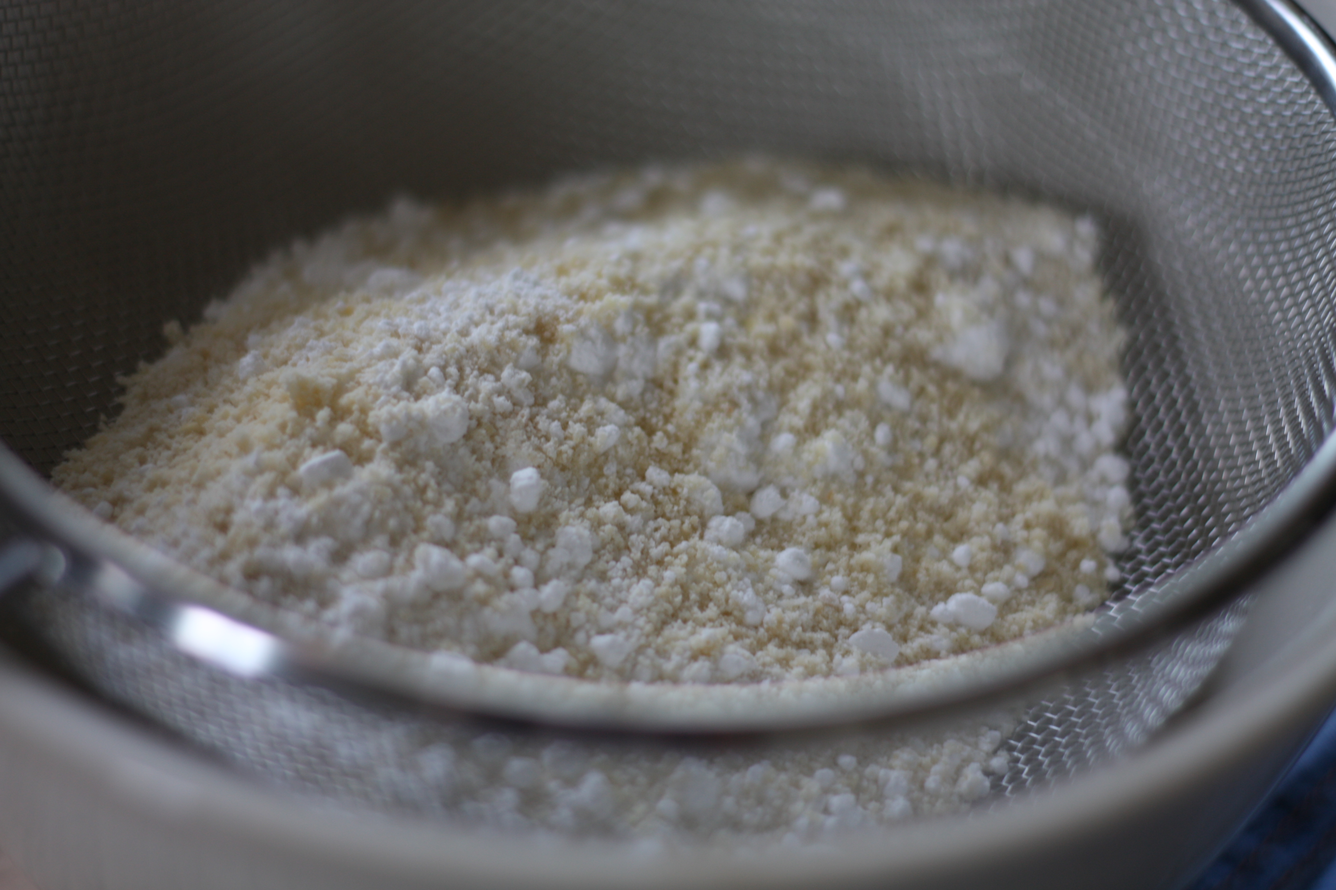 1. Bland mandelmel og melis sammen i en bolle. Sikt det 2-3 ganger slik at du får vekk alle klumper.