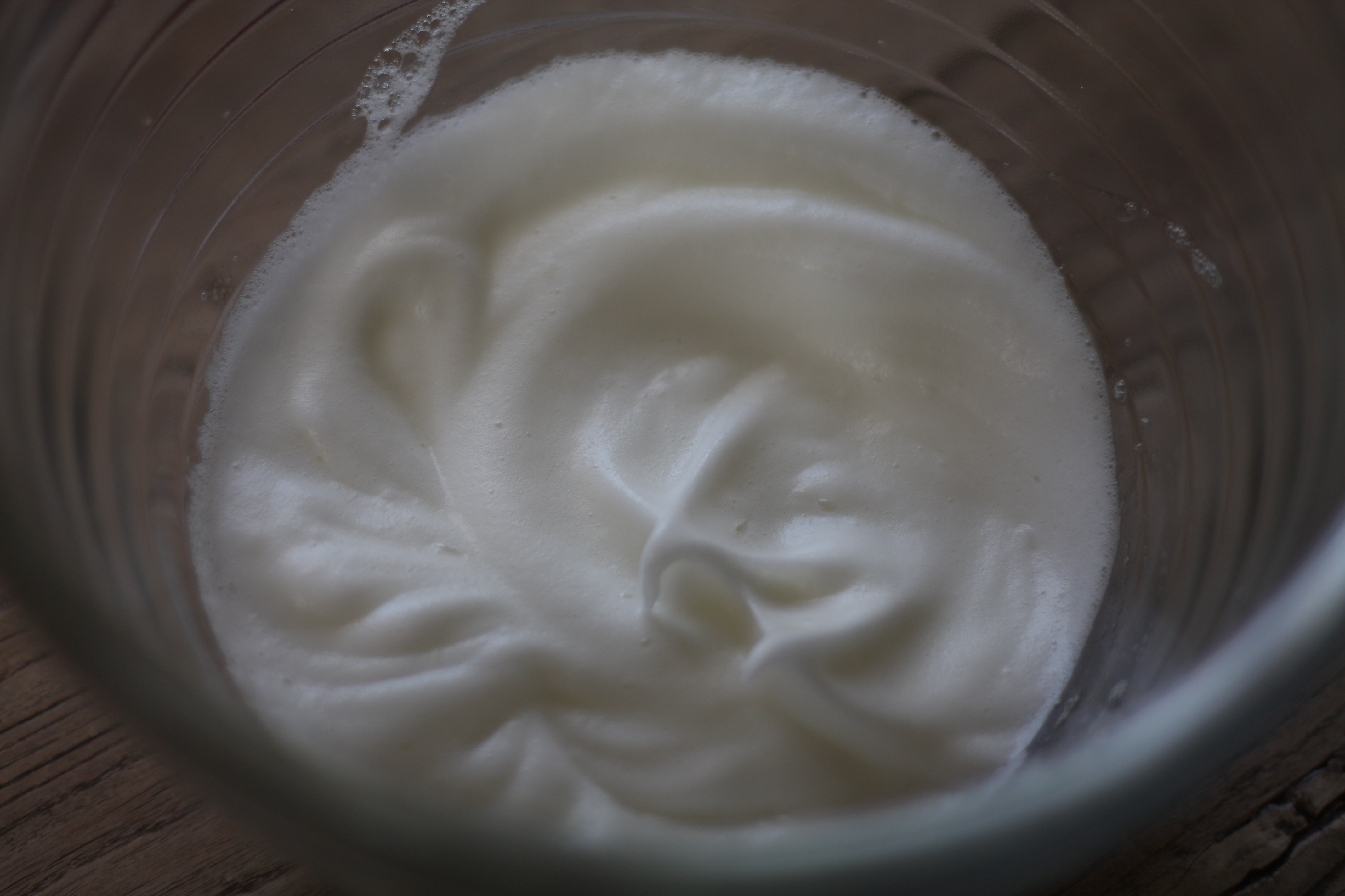 2. Pisk eggehvitene på middelshastighet til de er stive.