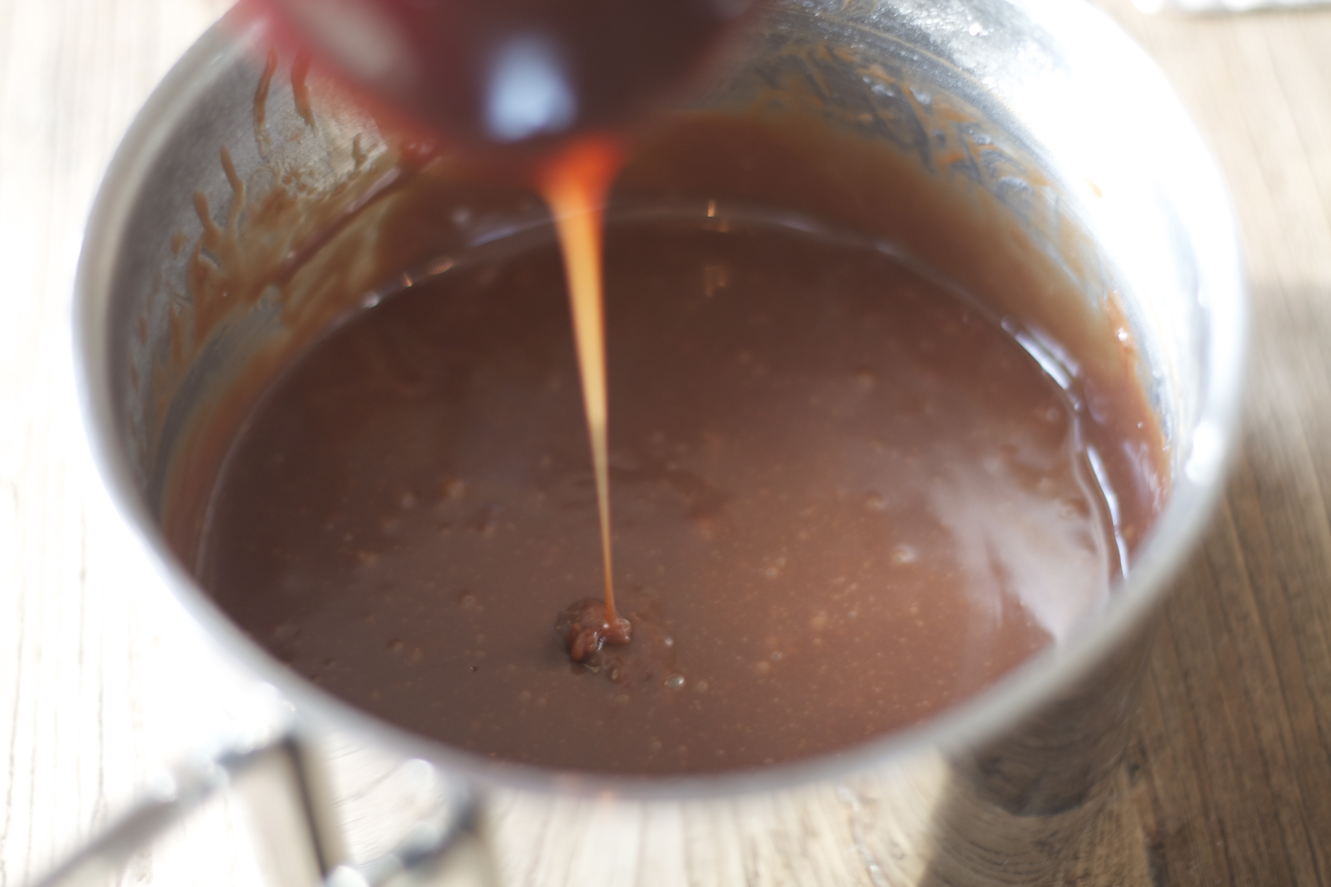 1. Smelt sjokoladen og fløten på svak varme. Rør deretter inn smøret. Bruk en stavmikser for å få en glatt konsistens. Ha i sprøytepose, og la den avkjøles i kjøleskapet.