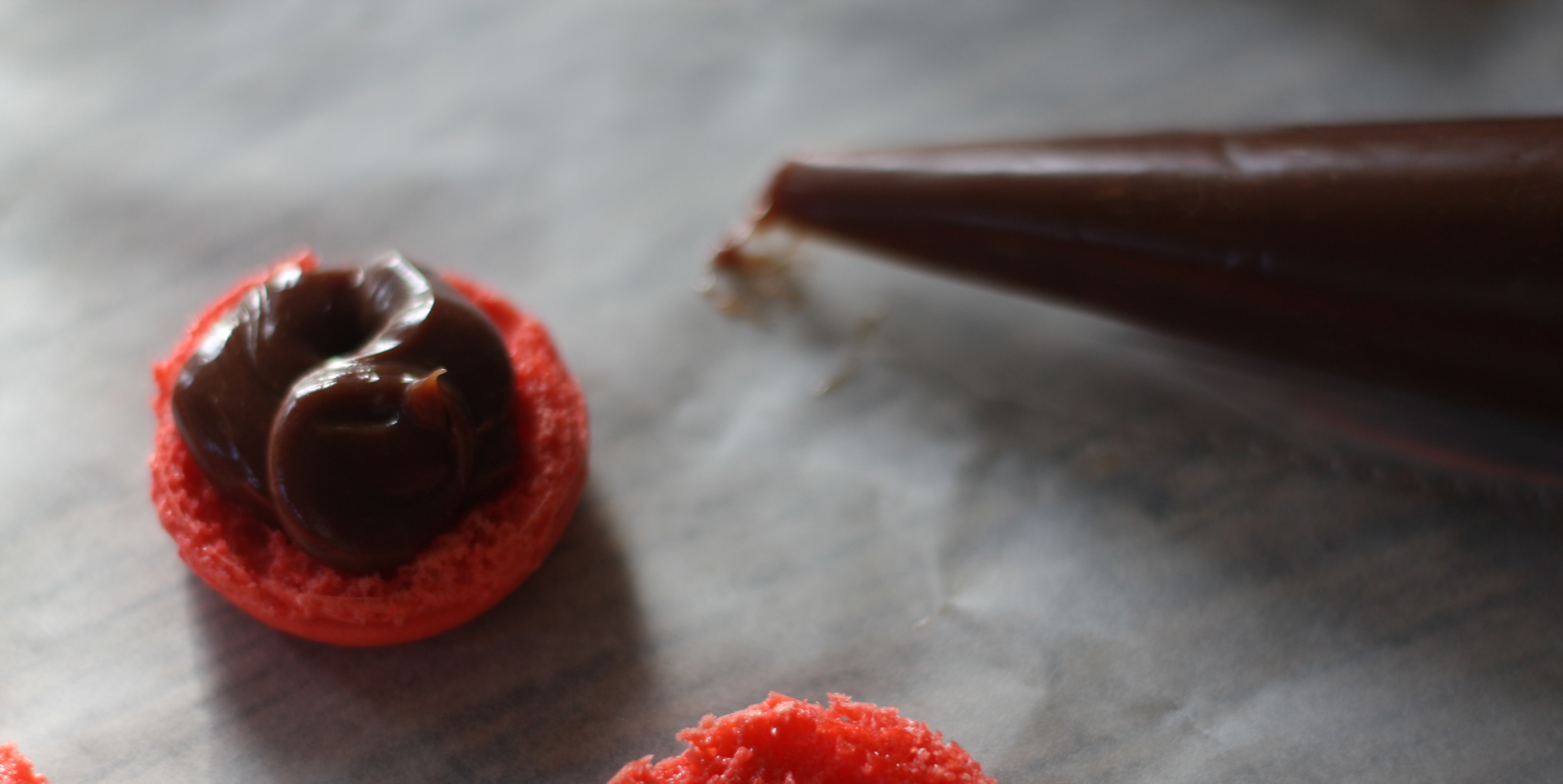 Fyll makronene med kremen på en bunn, og ha den andre oppå.