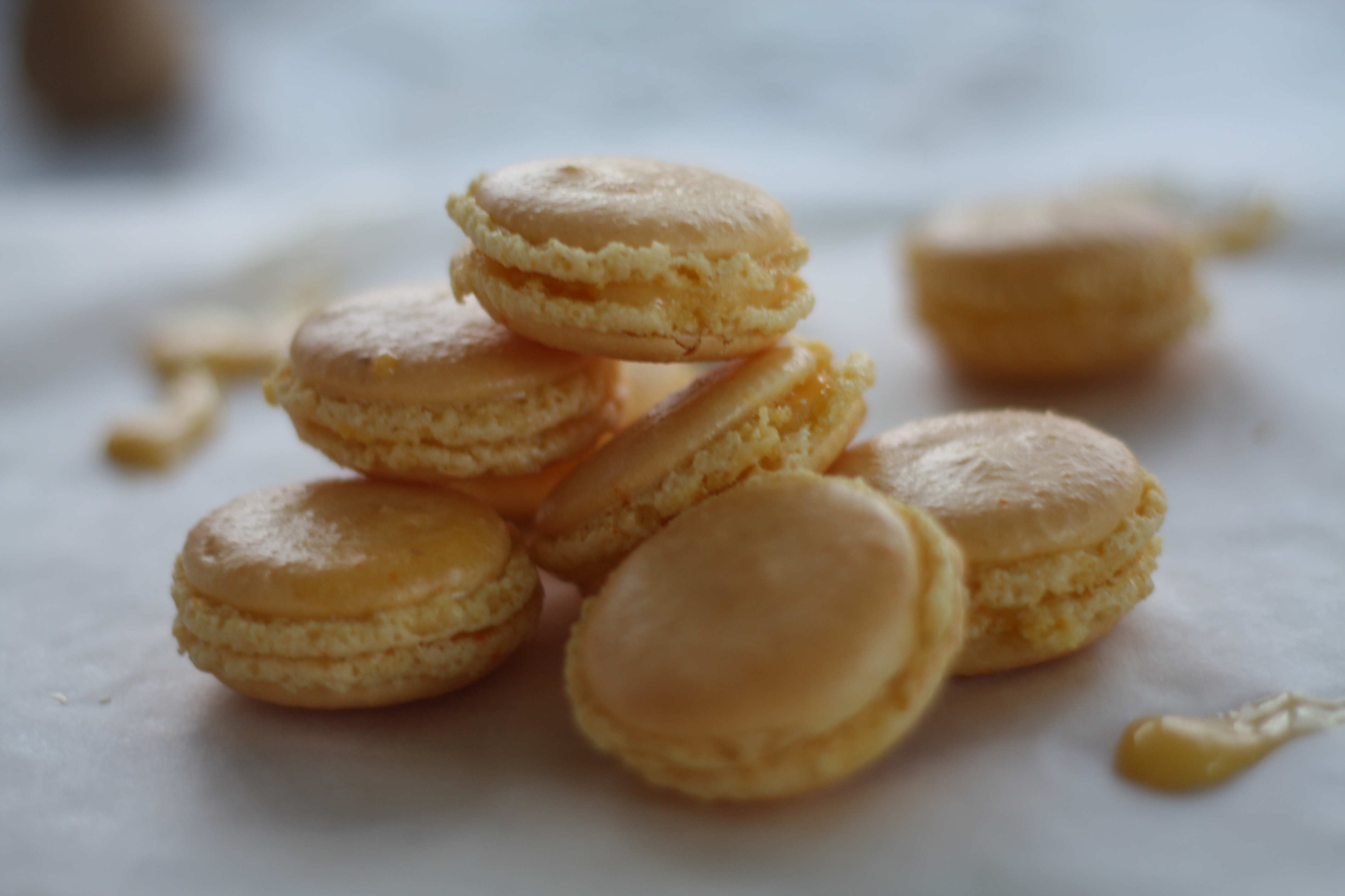 Jeg fylte de rosa/fersken makronene med sjokoladekrem, og de gule med sitronkrem. Fargene er så fine sammen, nå som det er sommer. Skikkelige sommer makroner 🙂