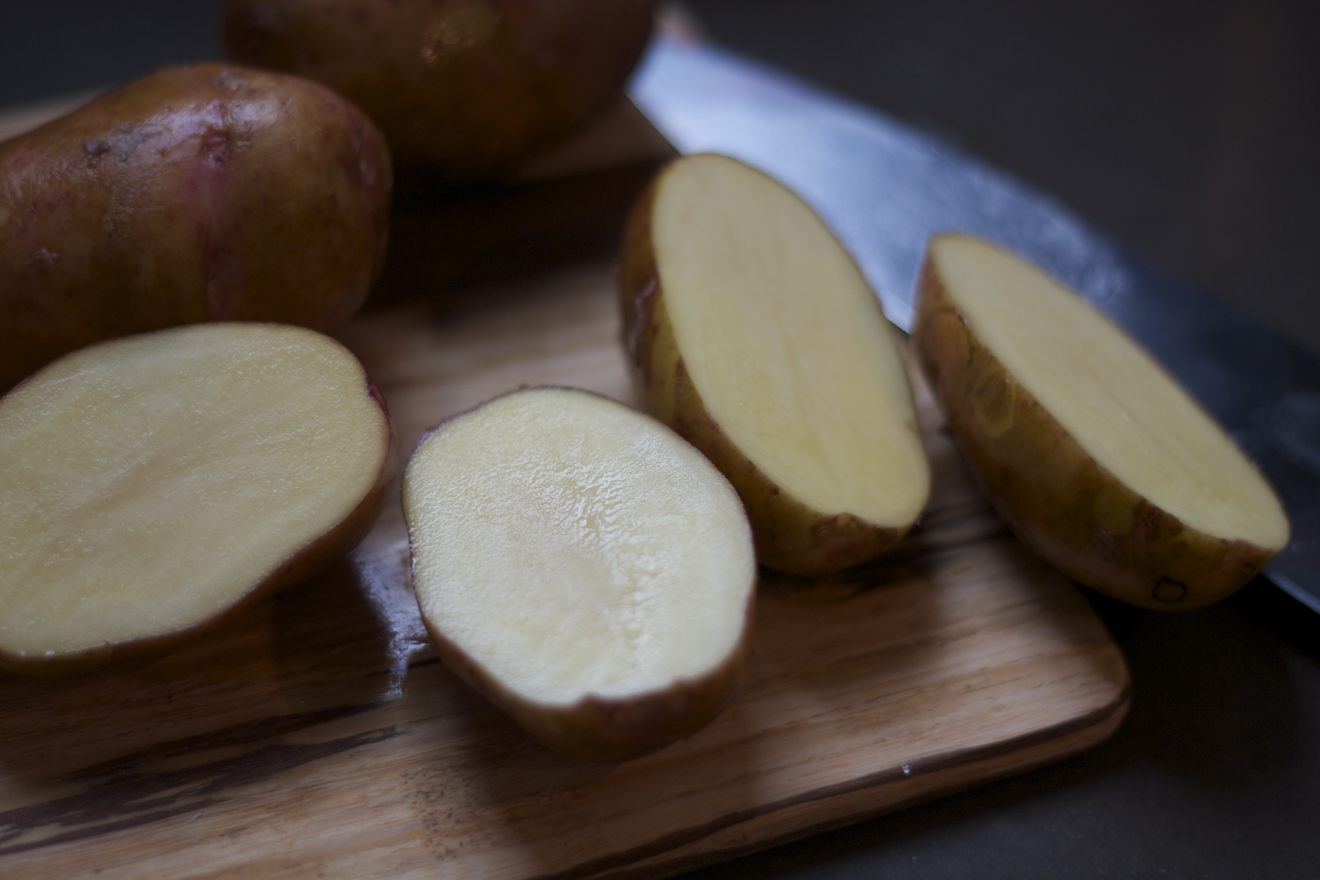 1. Vask og del potetene i to. Prikk med en gaffel.