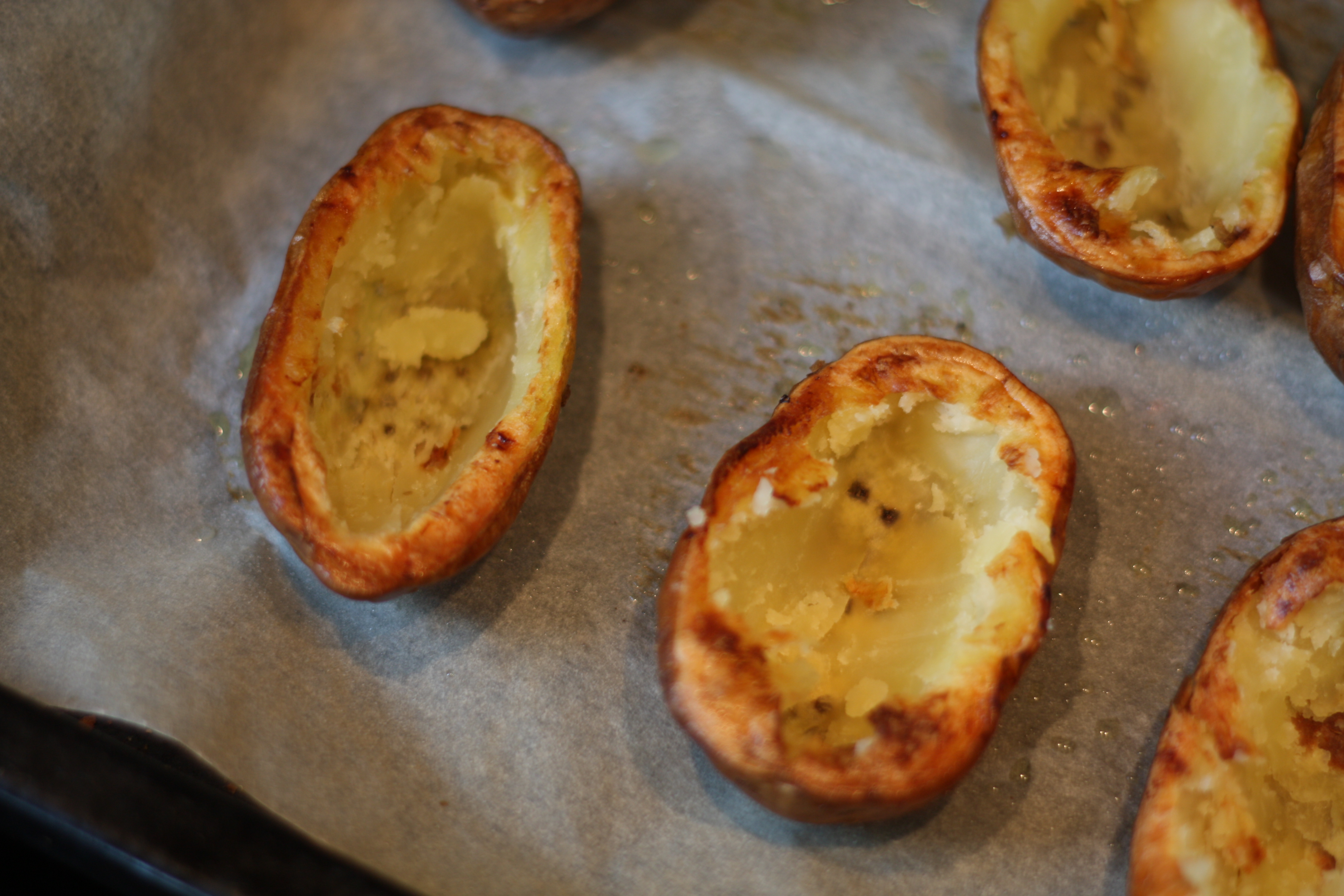 Mens potene baker i ovnen, lager du fyllet. Hør på musikk og kos deg på kjøkkenet. Det gjør jeg 🙂 Elsker å stå på kjøkkenet.