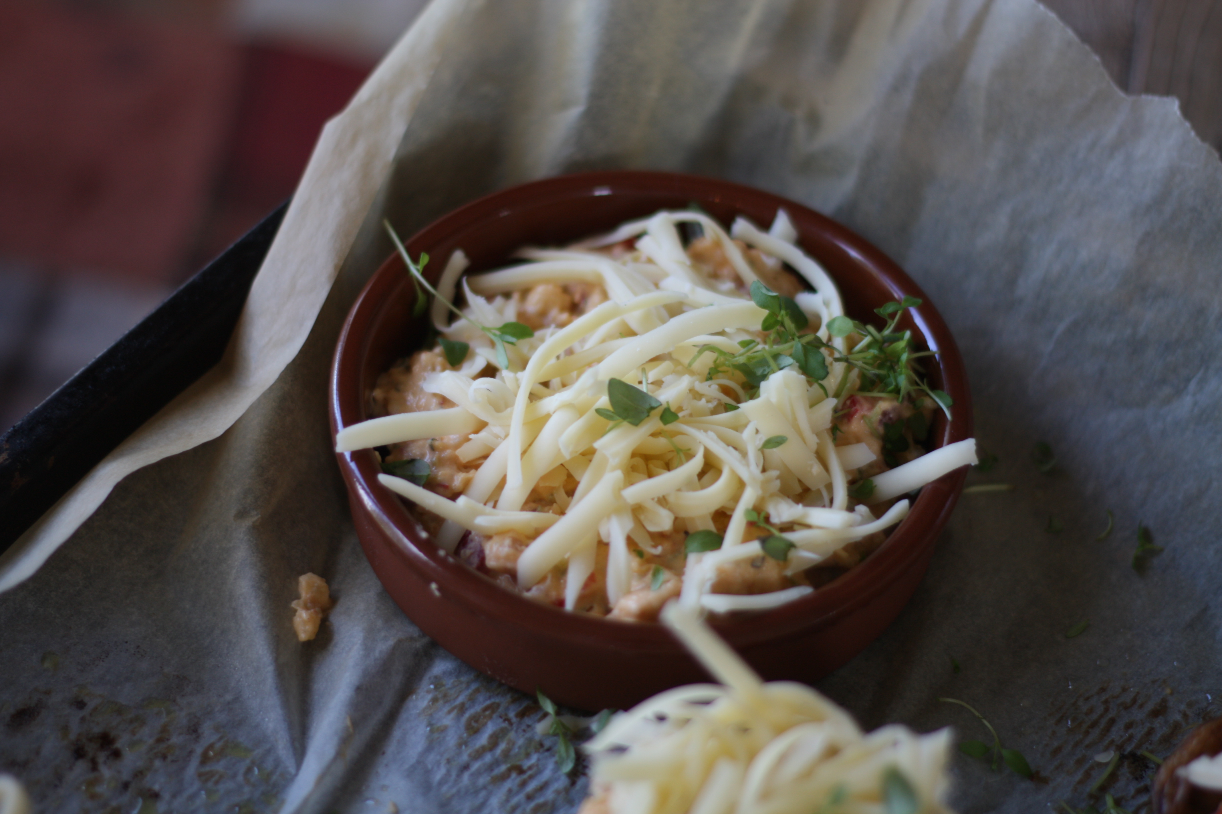 Har du fyll til overs, legg det i en liten ildfastform og ost over.
