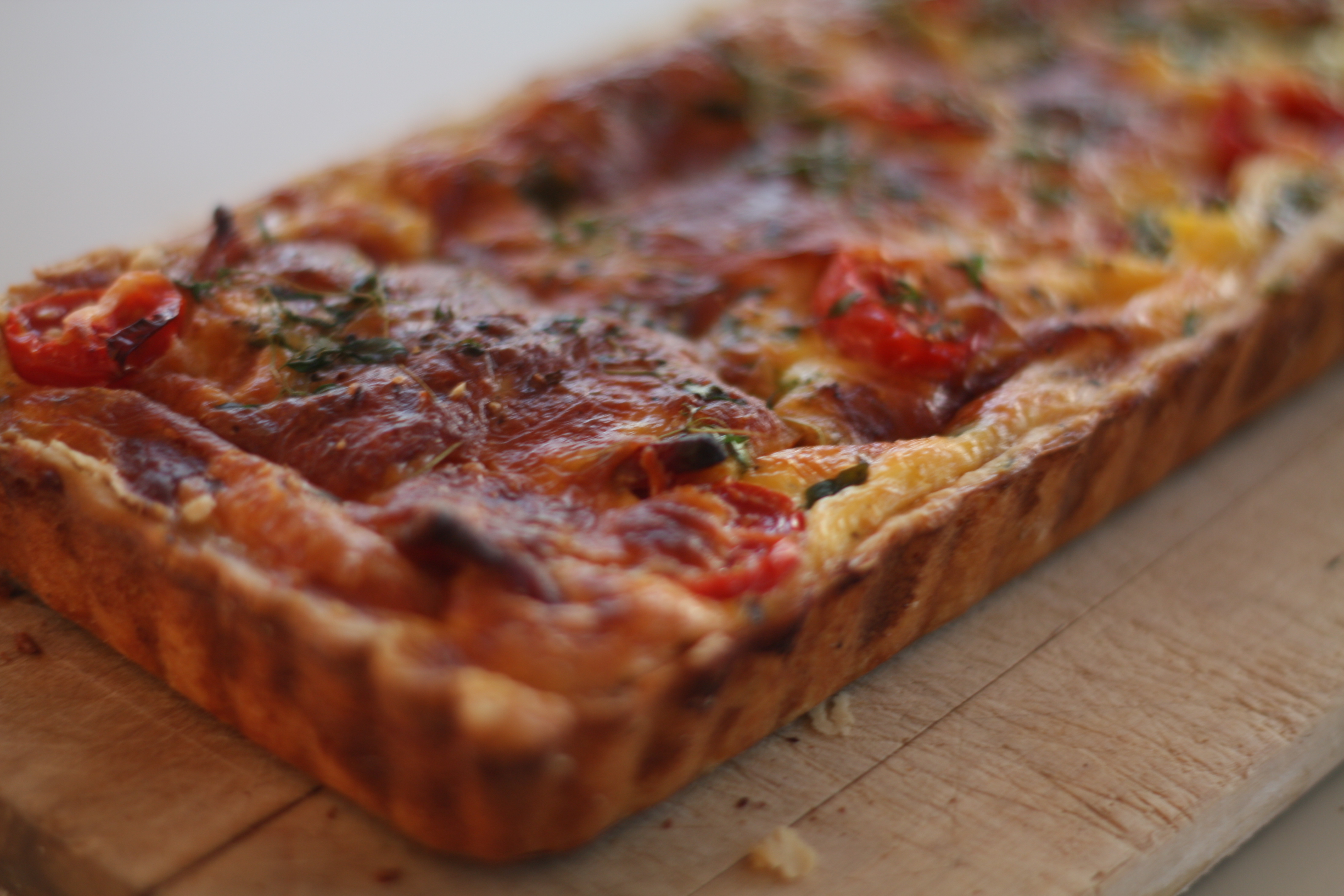 Endelig er det torsdag, og dermed snart helg. Hurra! I dag skal jeg friste dere med en utrolig god pai jeg laget igår. Jeg kjøpte en ny avlang paiform i Israel, som jeg har gledet meg til å bruke. Du finner sikkert lik på ebay. Denne paien er også litt sunnere enn vanlig. Jeg har byttet ut melet med speltmel, og smaktsatt med olivenolje og timian. Du kan selvsagt velge en enda grovere/finere meltype. Lett creme fraiche, skummet melk, og egg til fyll. Sammen med mine favoritt grønnsaker ble det en utrolig smakfull middag. Denne paien metter godt på en høstkveld 🙂