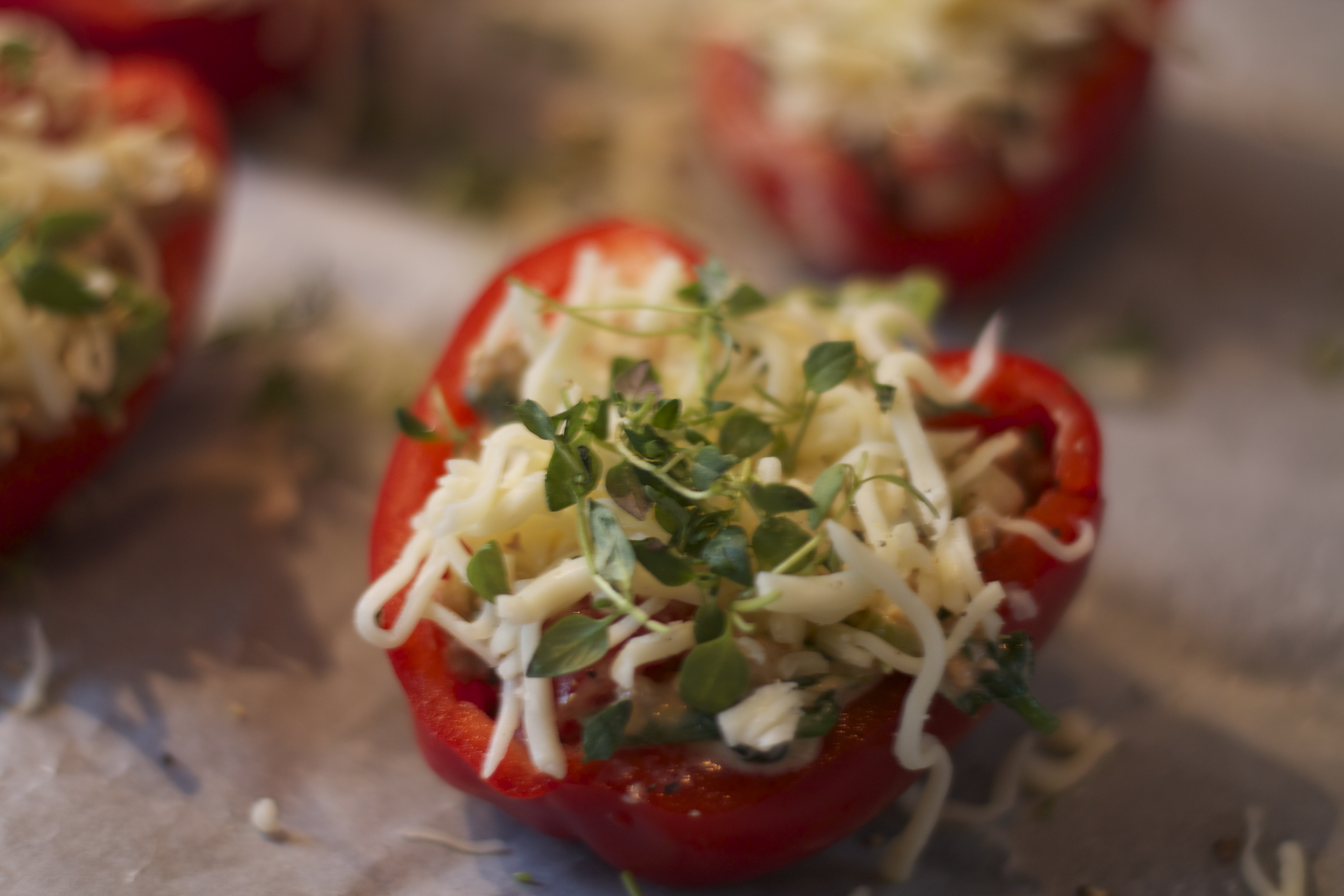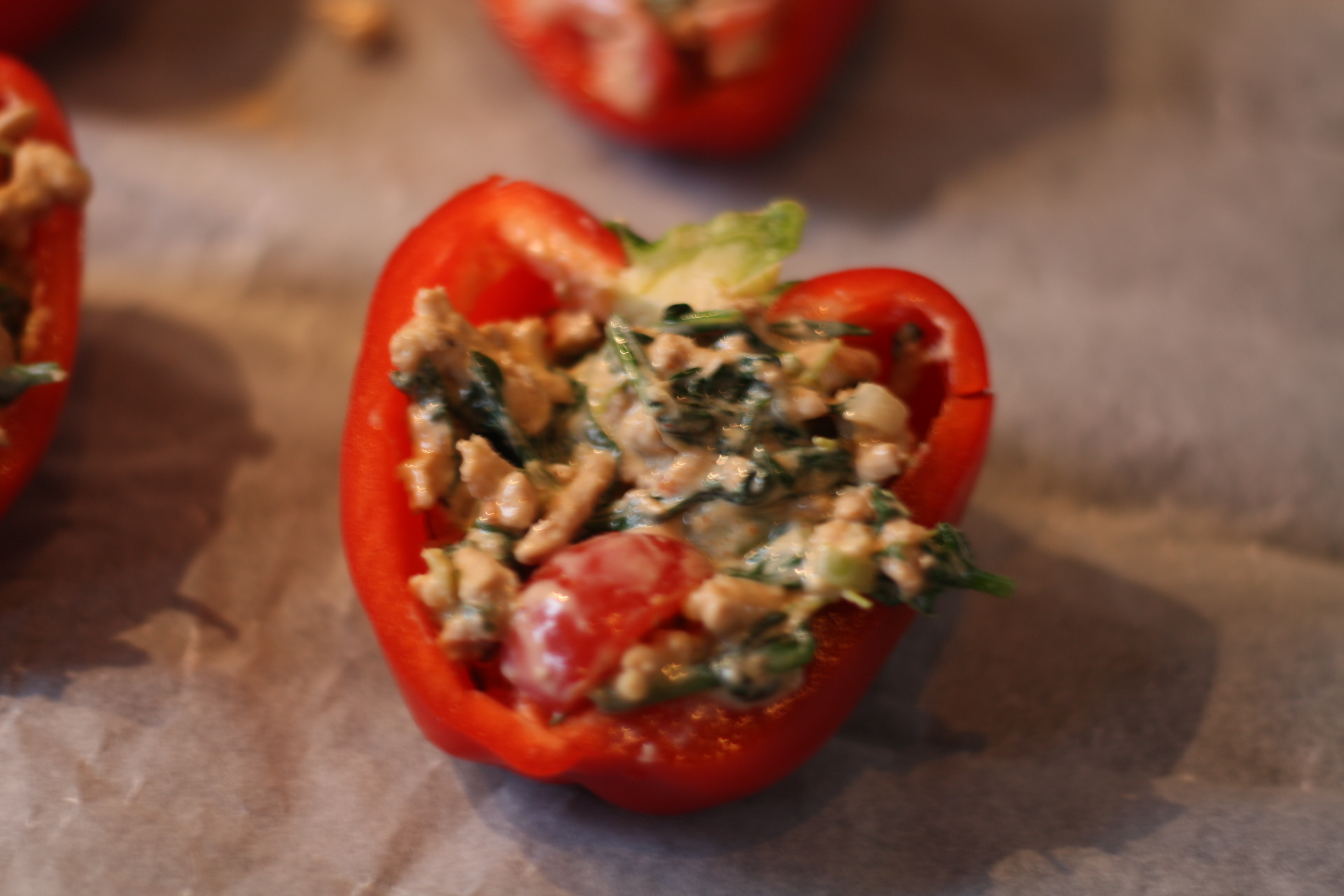 Fylte grønnsaker er en deilig rett å ha til middag, eller tapas. Jeg laget med paprika i dag. En sunn og deilig middag. Dette er en ypperlig mulighet til å bruke grønnsaksrester du har liggende. I mitt kjøleskap fant jeg spinat, vårløk og tomter.. Jeg hadde tacokrydder i kjøttet, så det ble en mexican vri. Enkelt og godt 🙂