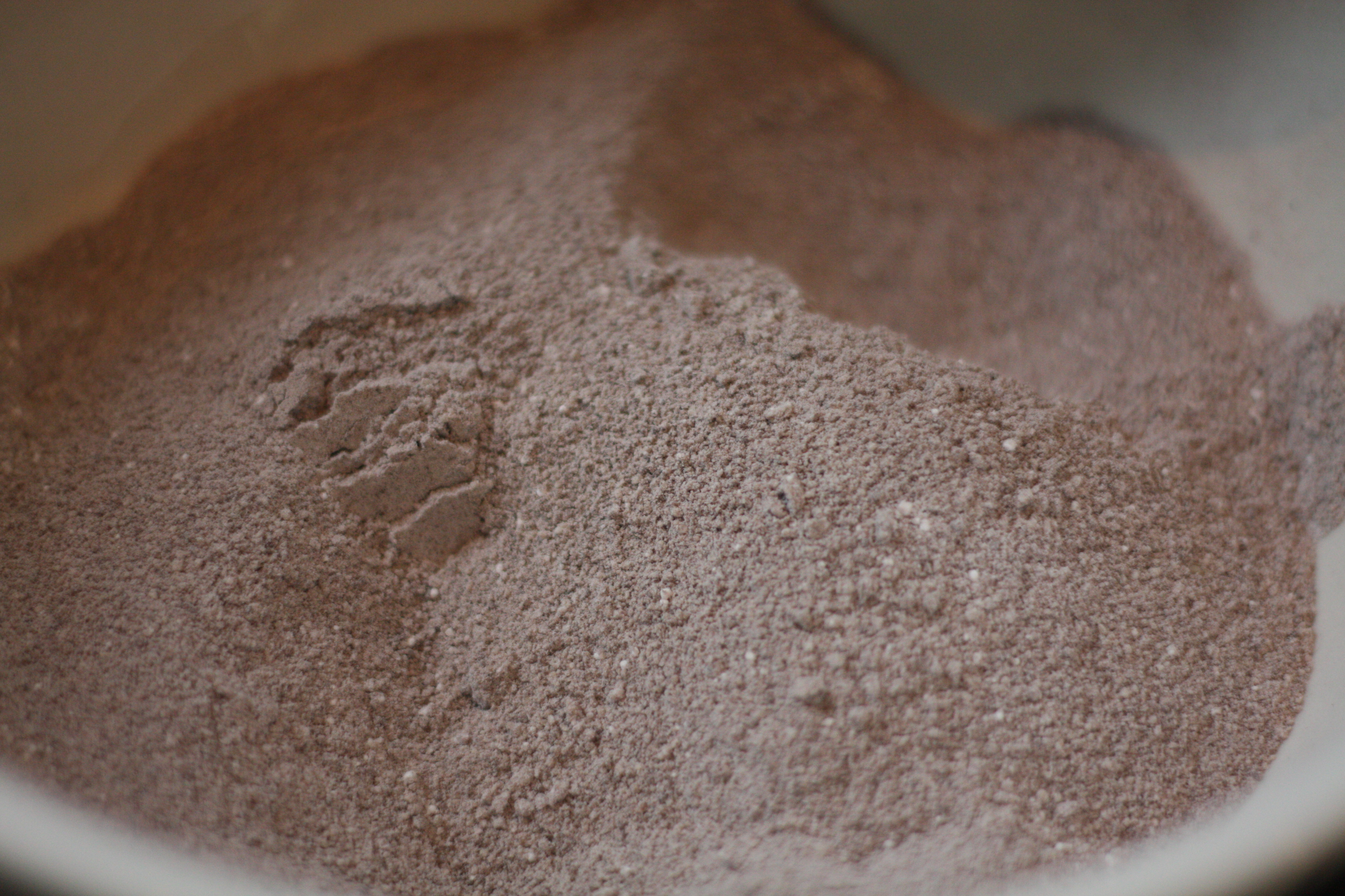 1. Bland mandelme, kakaol og melis sammen i en bolle. Sikt det 2-3 ganger slik at du får vekk alle klumper.