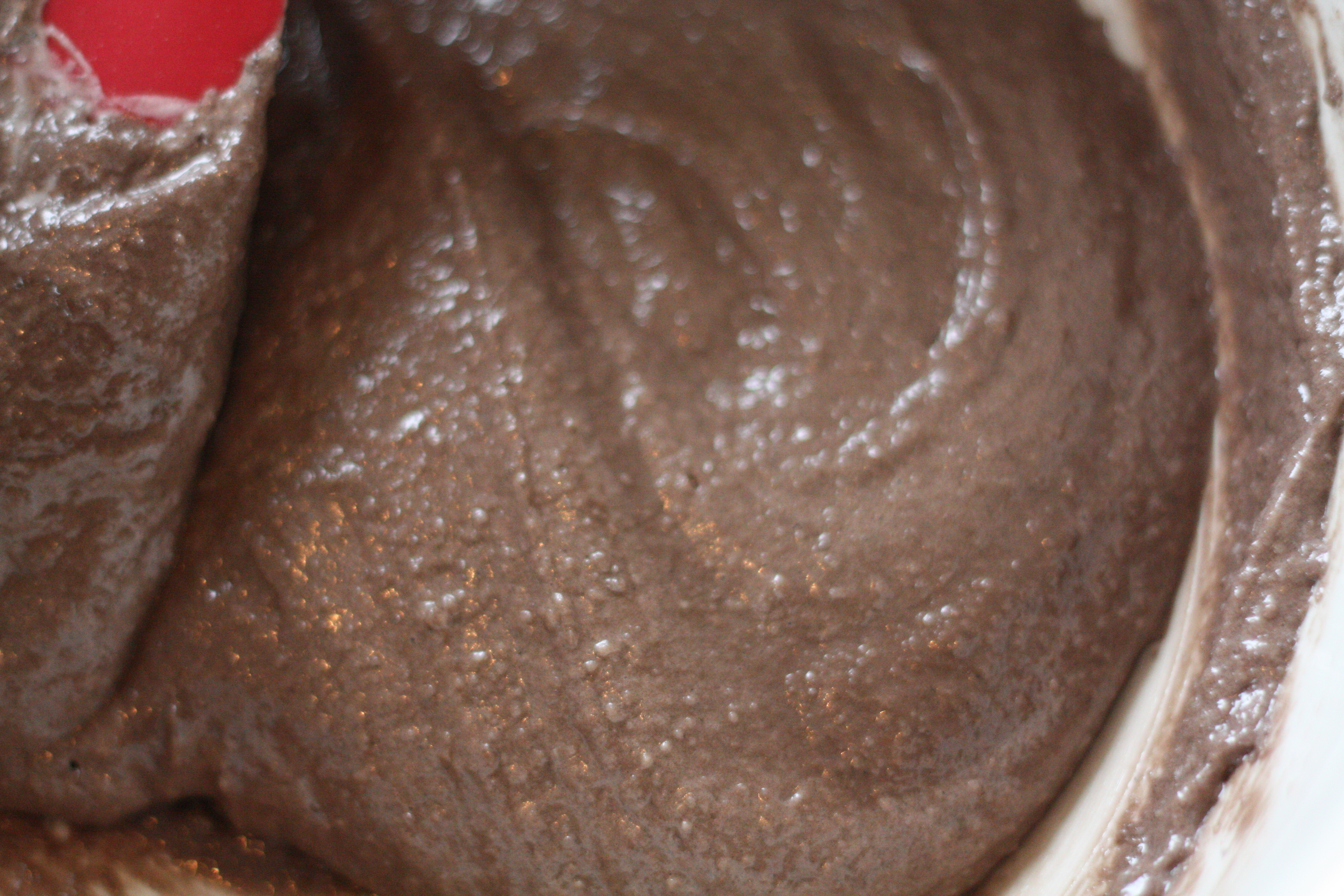 3. Vend inn mandelblandinge, og rør med slikkepott. Rør med et fast grep til alt er blandet godt. Her er det viktig å slå ut luften.