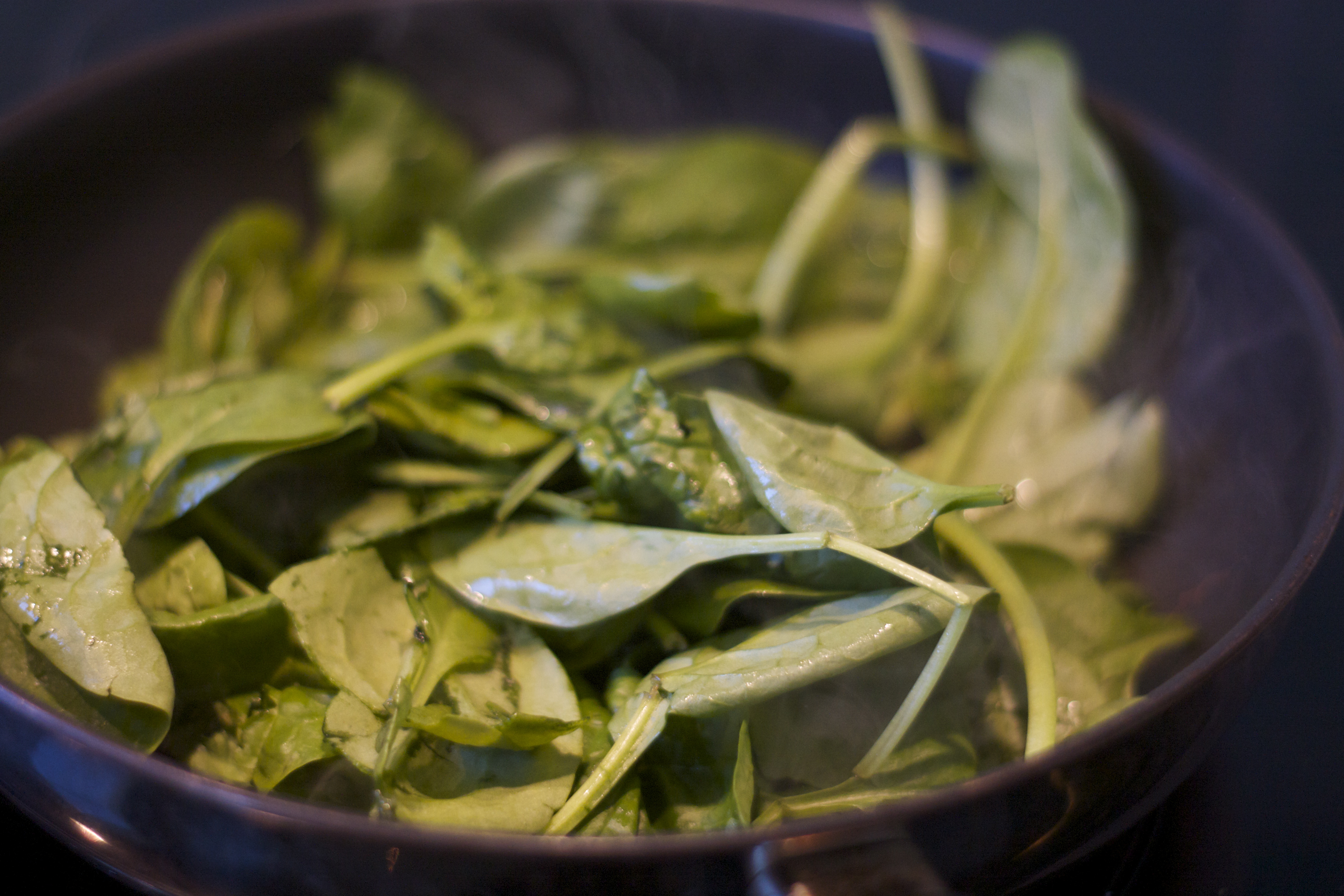 1. Stek spinaten i litt olivenolje til den faller sammen.