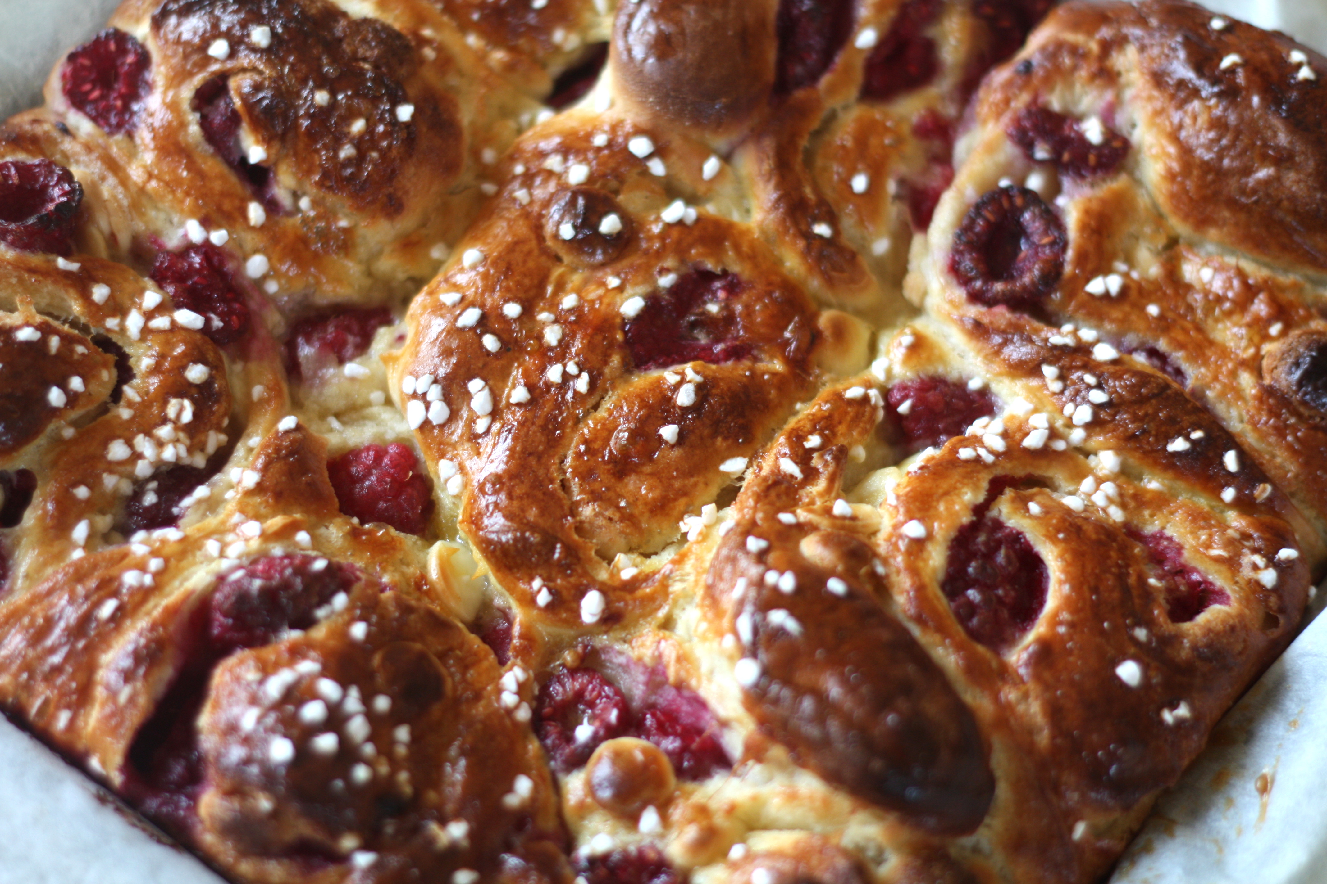 Lukus boller til helgen, slår ikke feil. Det var bringebær på tilbud, og jeg har lenge hatt lyst til å prøve denne kombinasjonen i boller. Resultatet ble himmelsk! Deilig hvit sjokolade fra Belgia, sammen med syrlige bringebær. Yum. Det er helg og lov til å unne seg litt ekstra luksus. Oppskriften er min favoritt bolledeig fra Åpent bakeri. Del oppskriften i to og lag halve med bringebær og hvitsjokolade, og andre halvdel med kanelsnurrer. Eller hveteboller. Inviter venner på bollefest i helgen 🙂