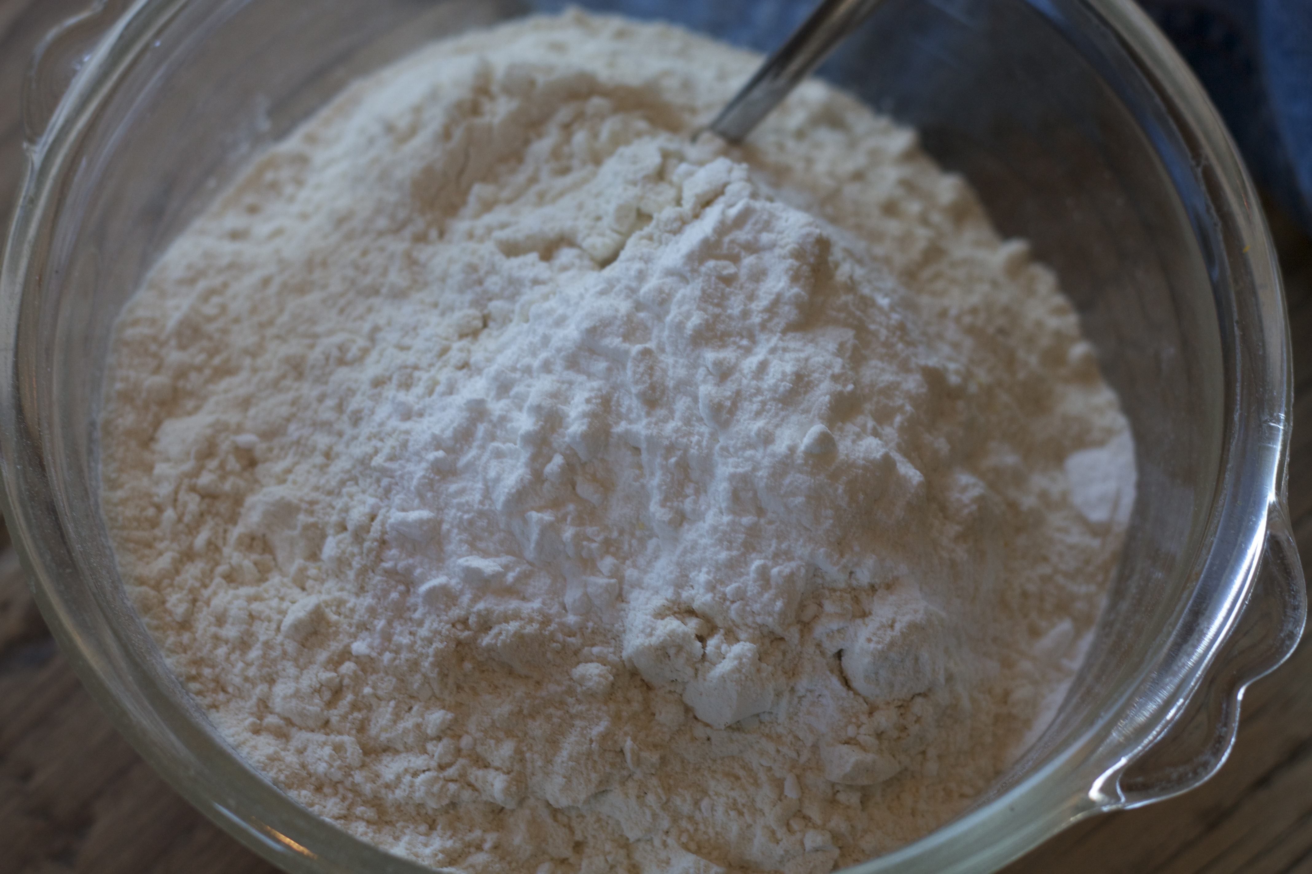 3. Tilsett melblandinge og bland til du får en fin deig.