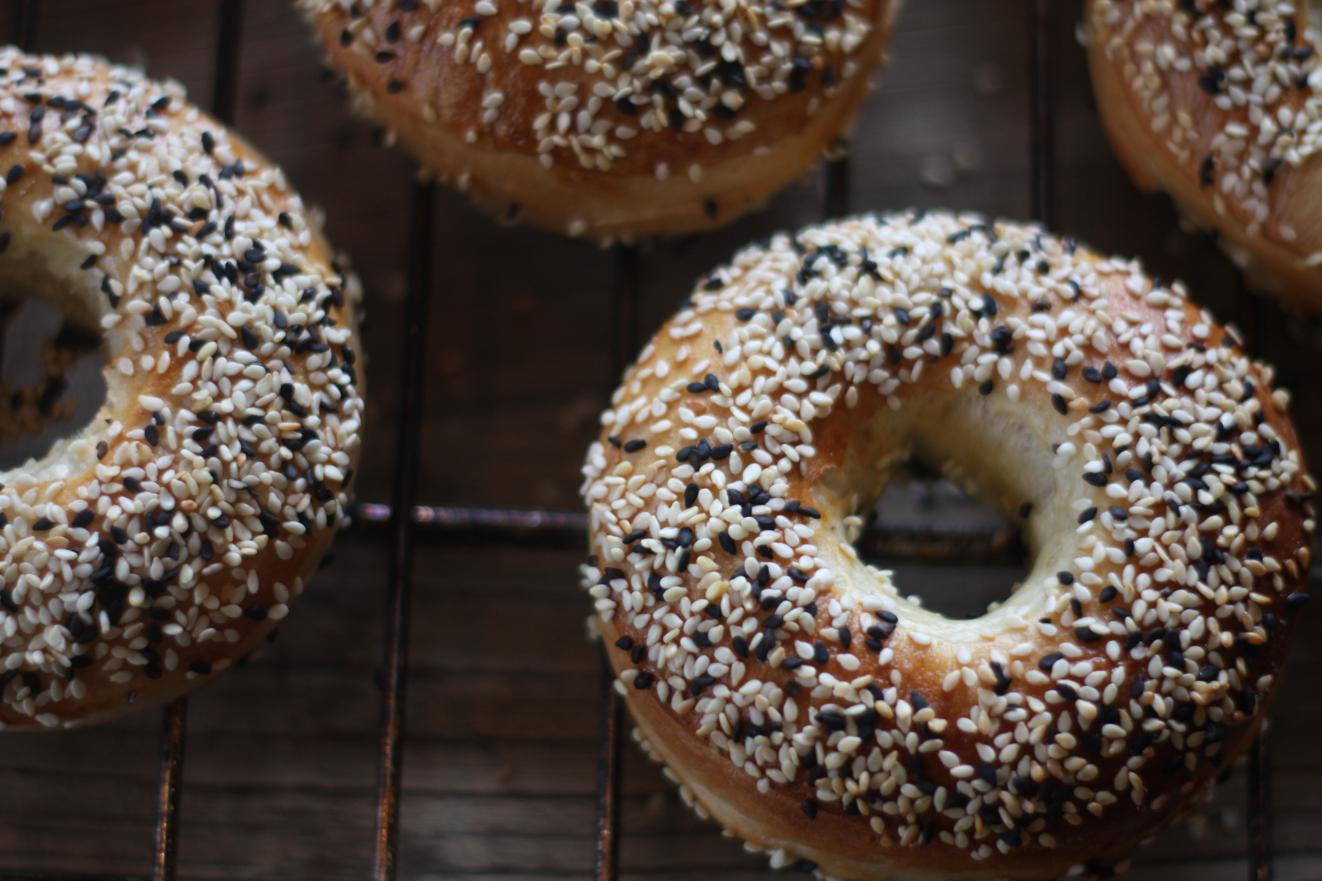 Da vi bodde i USA spiste vi ofte ristet bagels med kremost. Noe av det beste i verden, spør du meg.Da jeg tittet innom hobbykokken fikk jeg flashback på min bagelstid i Boston. Jeg ble inspirert av denne enkle og gode oppskriften. Nå har jeg spist bagels med kremost, 2 dager på rad. Lykke. Dette er en oppskrift alle får til og er superenkel. Nøkkelen er å mulittask når du baker gjærbakst. Denne deigen trenger å heve 60 min, ta deg en løpetur i mellomtiden. Det gjorde jeg. Eller gjør noe annet du må gjøre. Vinn vinn uansett 🙂 Disse bagelsene må du bake til frokost, kvelds eller aftens 🙂 Du vil ikke angre!