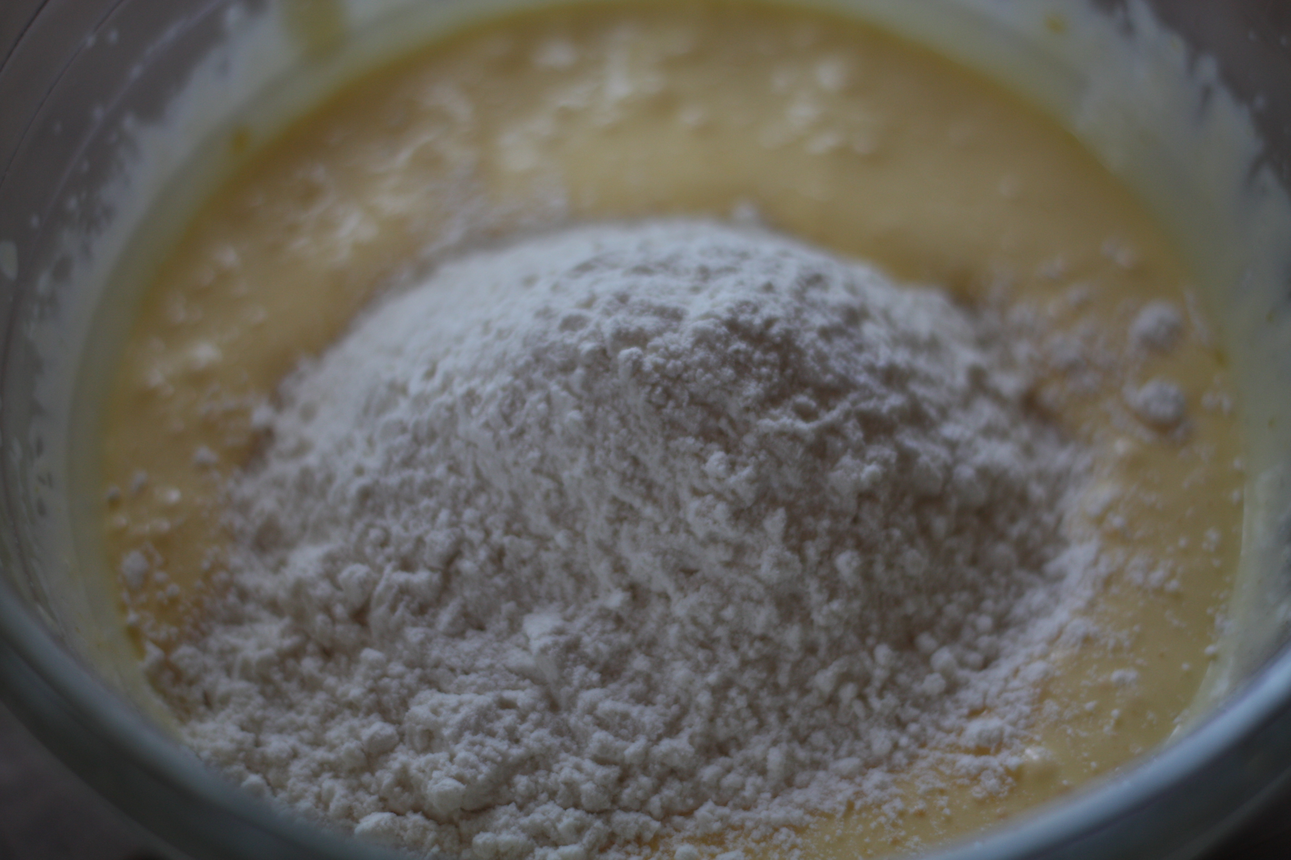 3. Tilsett mel og bakepulver.