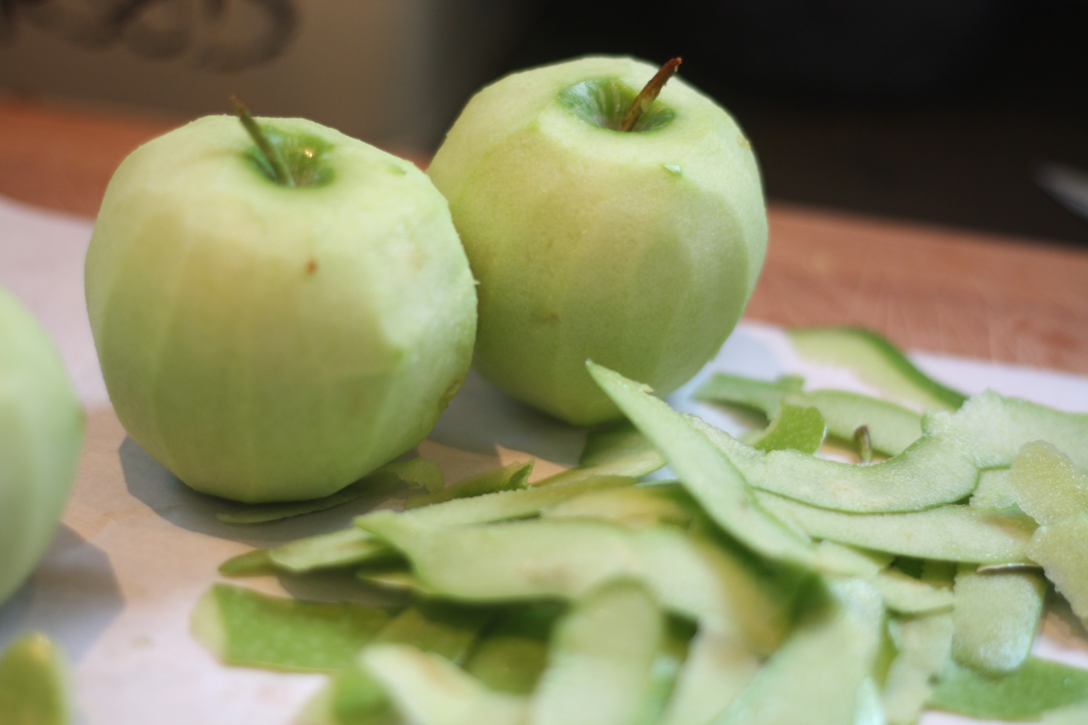 4. Skrell eplene, og skjær i tynne skiver.