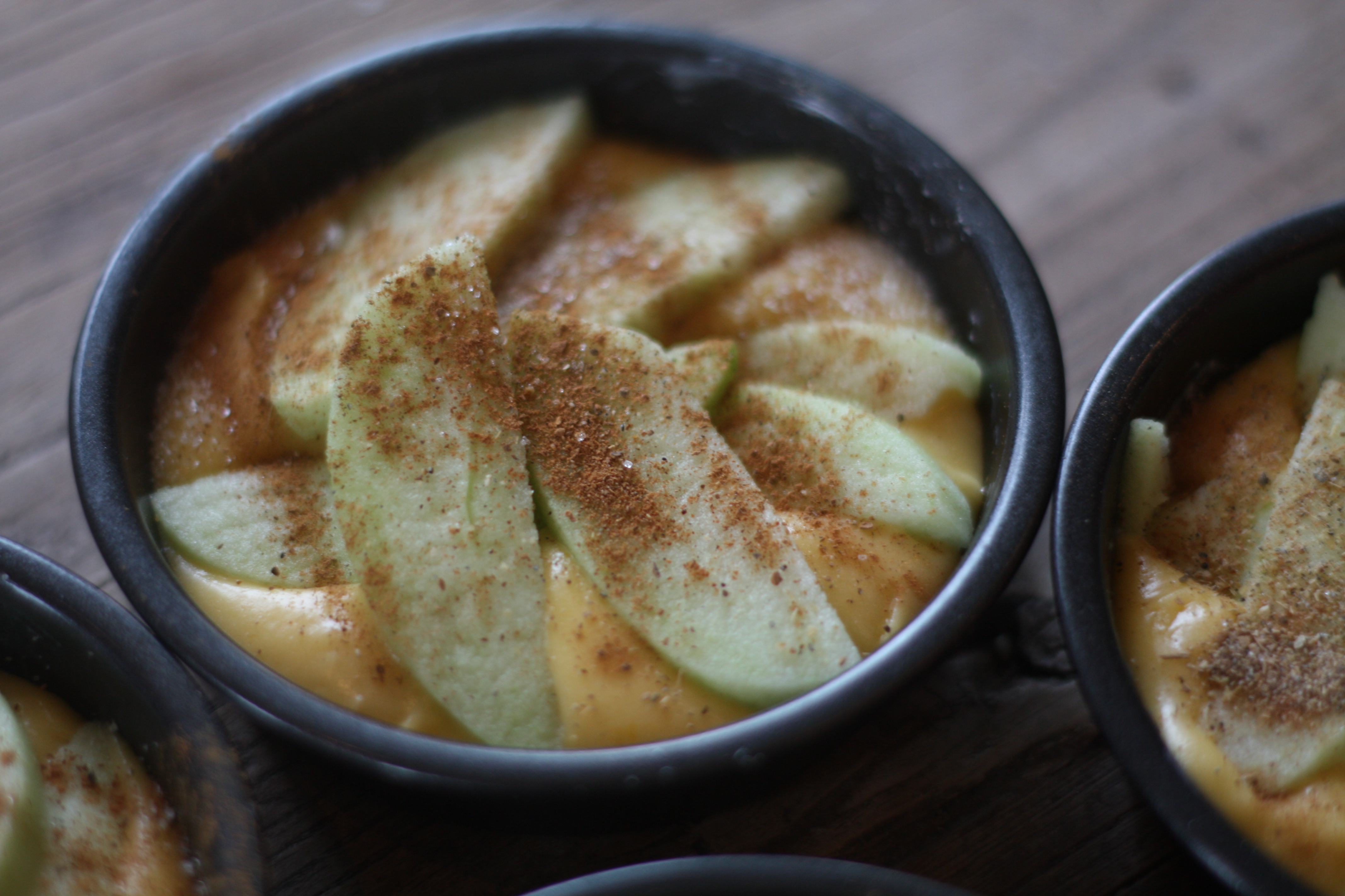 6. Legg på epleskivene, og dryss over kanel og sukker.
