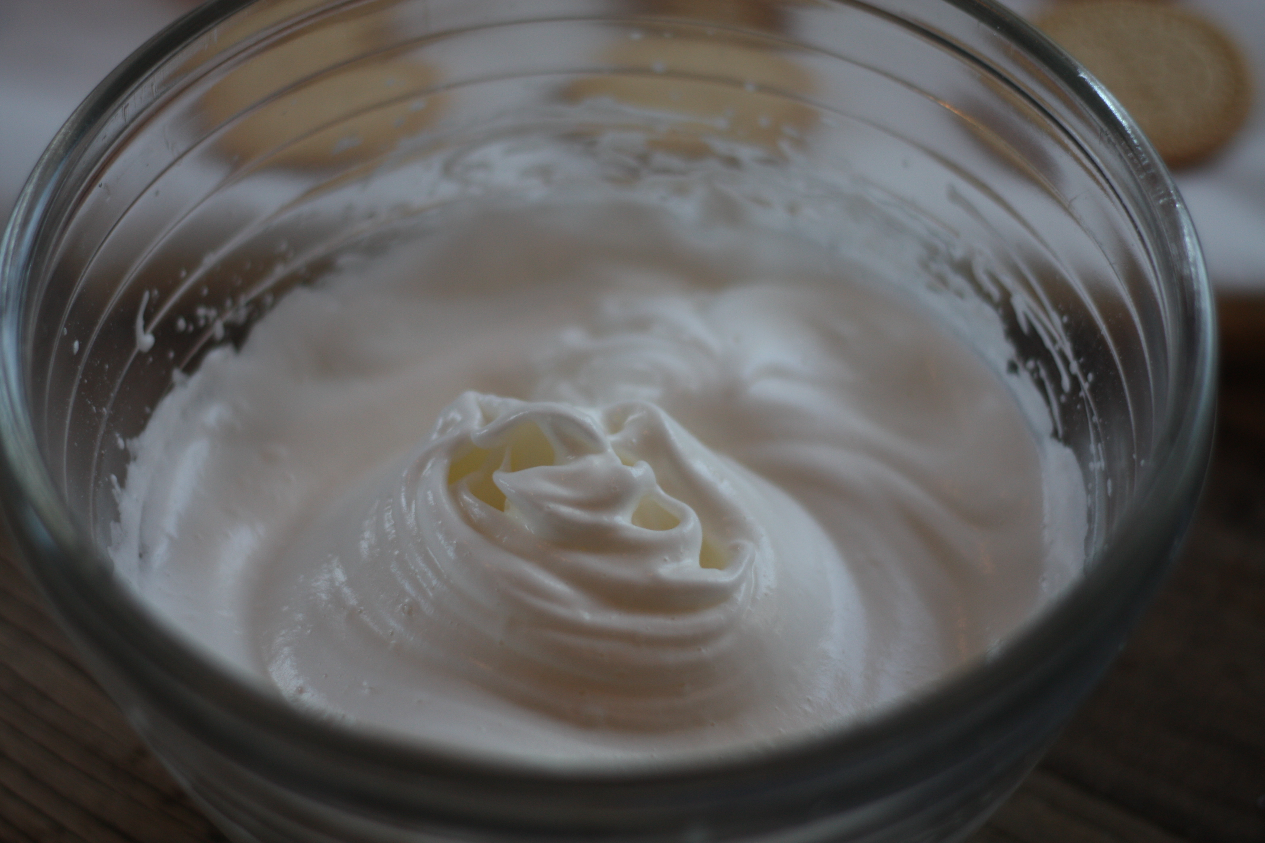 1. Legg gelantinplatene i vann. Skill eggene, og ha eggehvitene i en bolle. (Eggeplommene kan brukes til julebaksten) Begynn å pisk marengs med en spiseskjee sukker. Når den begynner å skumme, tilsett resten av sukkeret. En spiseskjee om gangen. Ha vaniljesukkeret i tilslutt.