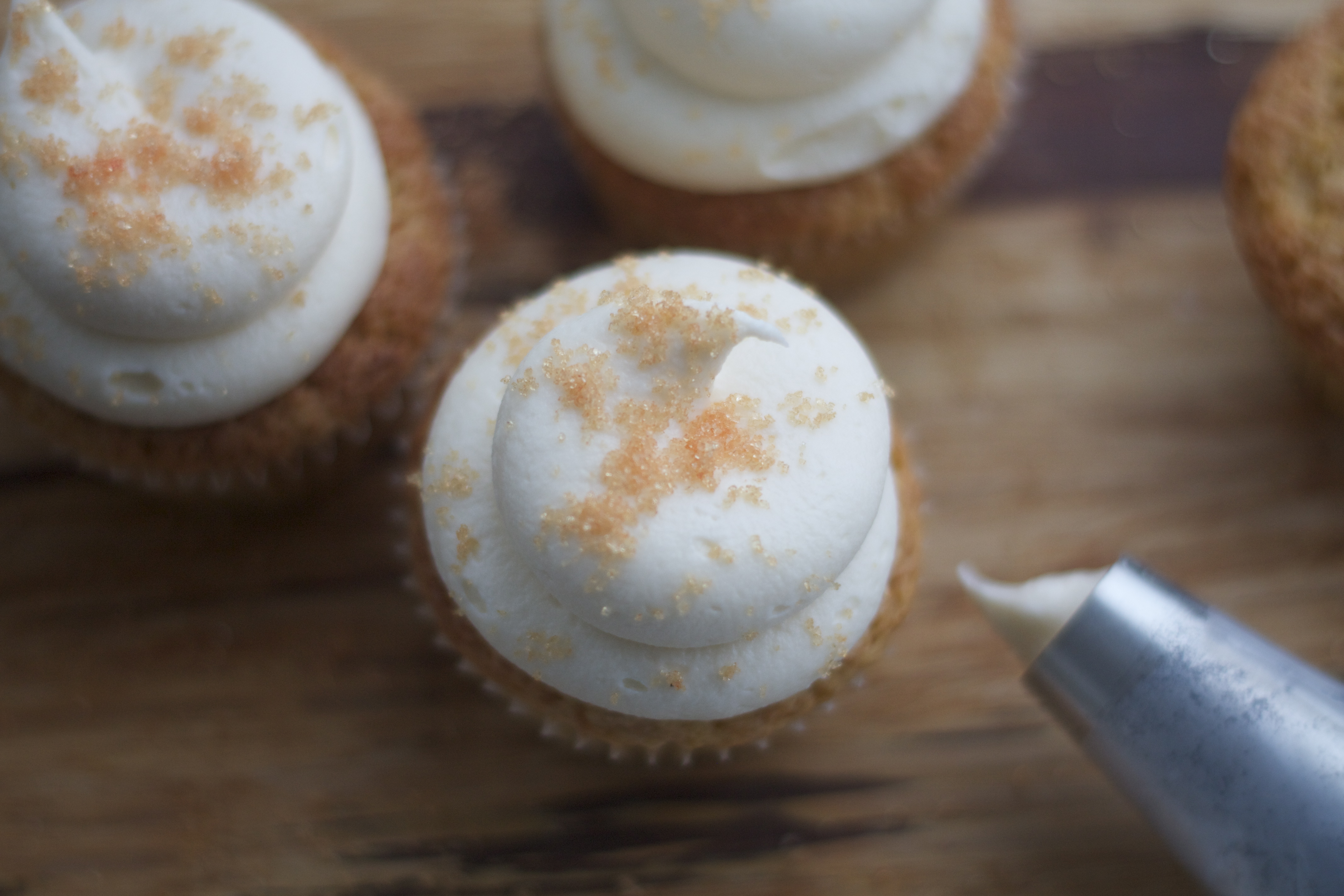 Dryss sukkeret over frostingen.